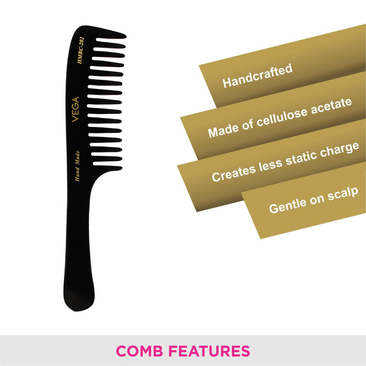 - Original Combs – Vega Shampoo Hair Comb,Handmade (India's No.1* Hair Comb Brand)For Men and Women, Black, (HMBC-202) by VEGA