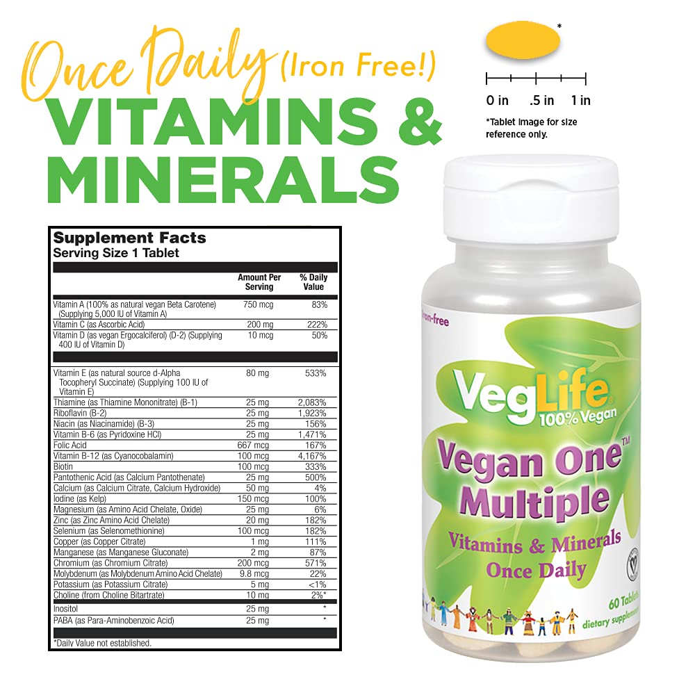 - Original Blended Vitamin & Mineral Supplements – VegLife Vegan One Multiple, Iron-Free, Once Daily Multivitamin & Mineral Complex, Certified Vegan, 60 Tabs, 60 Serv. by Veglife