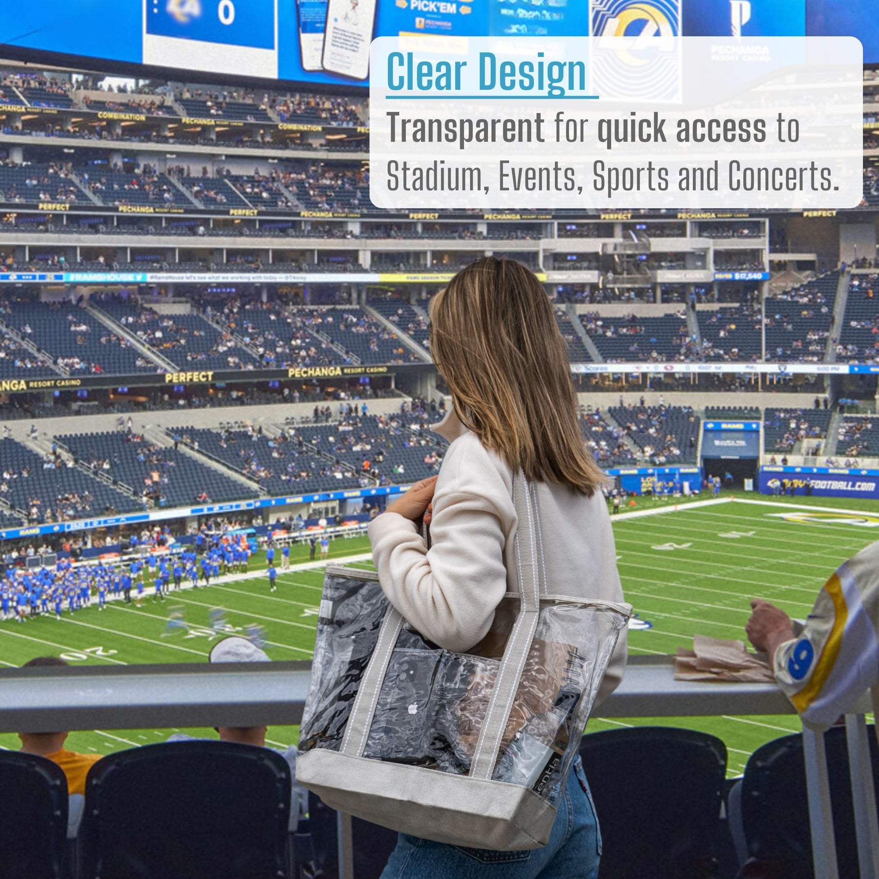 - Convenient See-Through Design – View your items easily and find what you need efficiently with the convenient clear design. Save time and get through security quickly at places that require clear bags! An excellent choice for game day - VENO clear tote bag is perfect for packing your event day items safely. Simply clean the interior and exterior of the bag with a sanitizing wipe or damp cloth and let air dry.