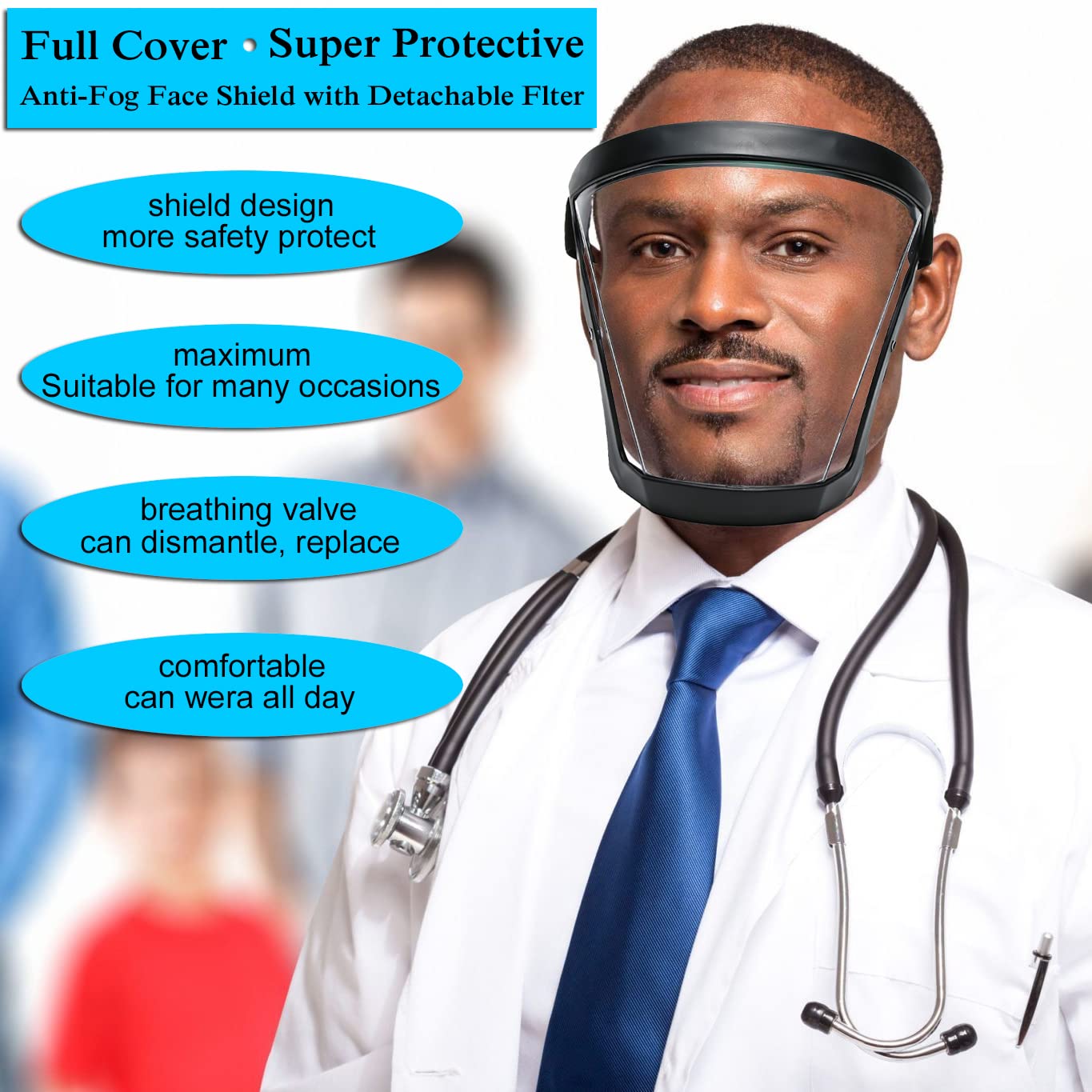 - Original Safety Face Shields – Unisex Super Protective Anti-Fog Face Shield with Detachable Flter, Hd Transparent Full Face shield,Reusable Eye, Nose, Mouth Protection (Black) by Verfimaci