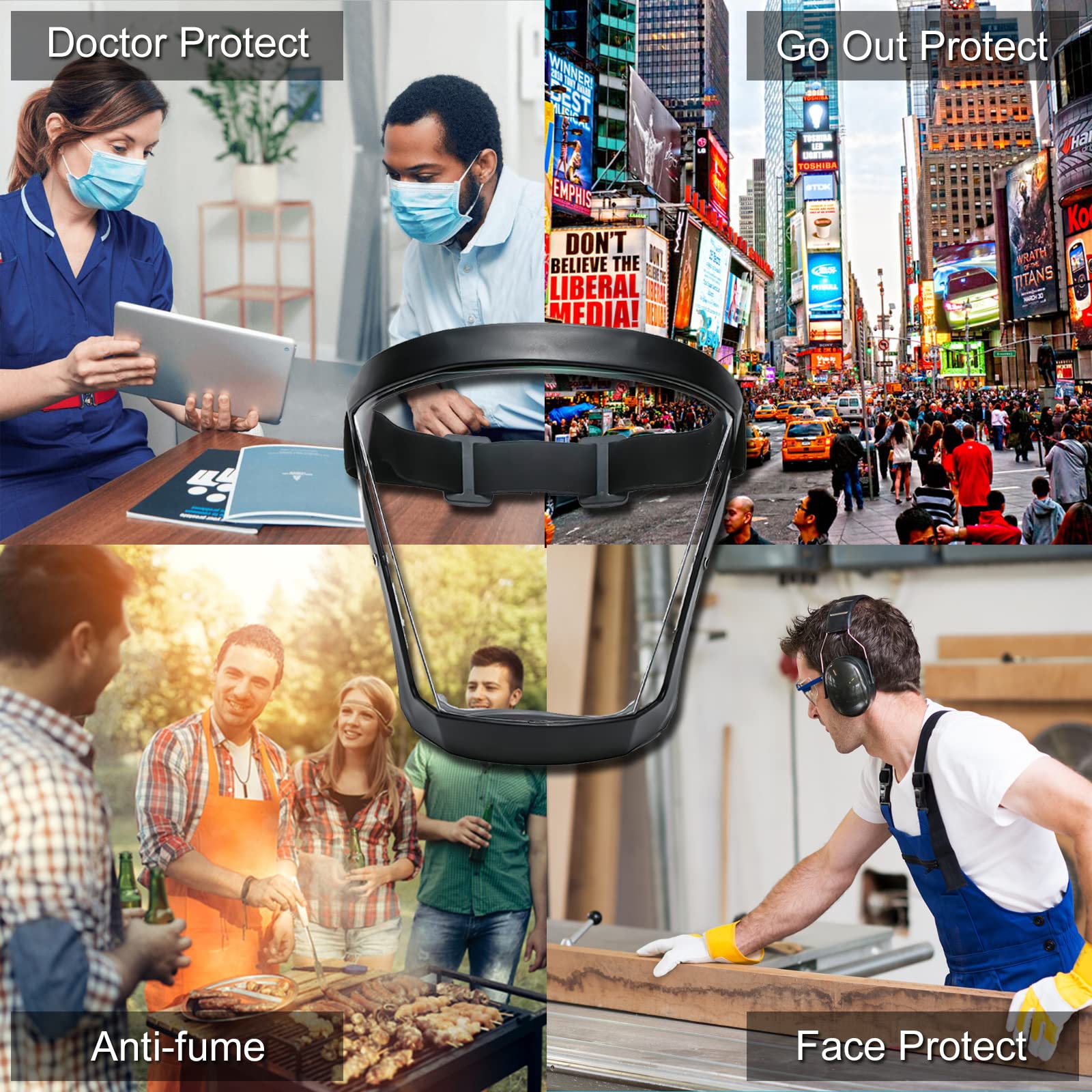 - 1.FULL FACE MASK: Large area from the eyebrows to the chin to protect against foreign aggression,Full Facial Protection from droplets, saliva,splash,oil and dust.