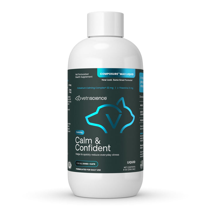 - Original Relaxants – VetriScience Composure Max Liquid Formula - Clinically Proven Dog Calming and Cat Calming Supplement with Colostrum, L-Theanine & Vitamin B1 for Stress, Storms, Separation & More - 8 oz by VETRISCIENCE