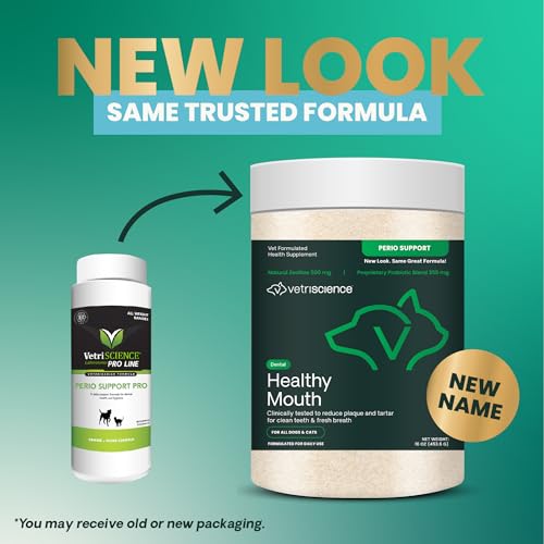 - Original Dental Care – VetriScience Perio Support Pro - Dental Health Powder for Dogs & Cats - Supports Breath Freshening & Aids Against Plaque - Comprehensive Dental Support with Zinc, Cranberry & Taurine - 16 oz by VETRISCIENCE
