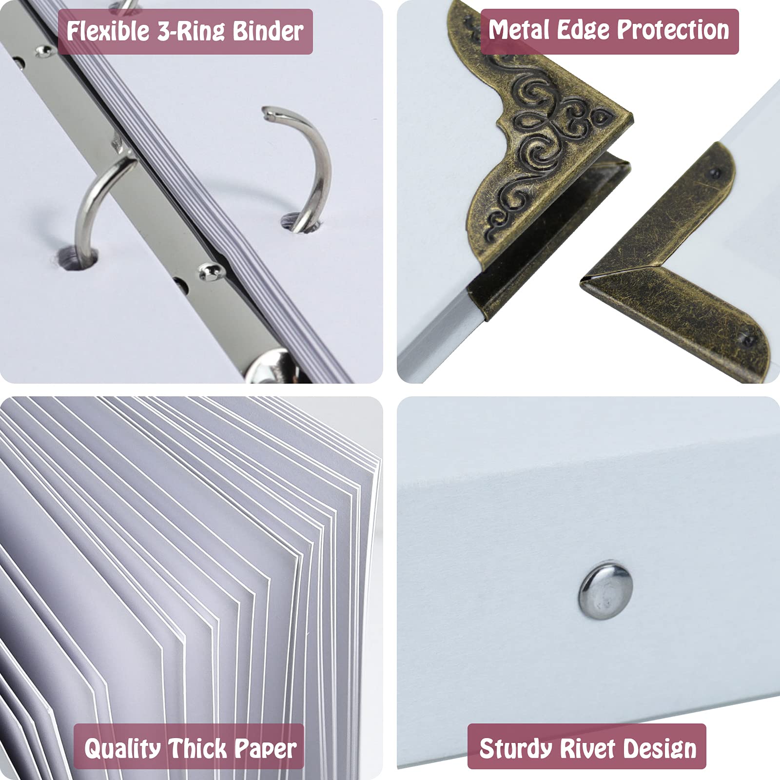 - Perfect Details: The four corners of the album are covered with metal, and beautiful patterns are engraved on them to protect the album cover from damage. High-quality cardboard cover and thick inner pages, It's durable and not easy to be bent, suitable for a long-term storage