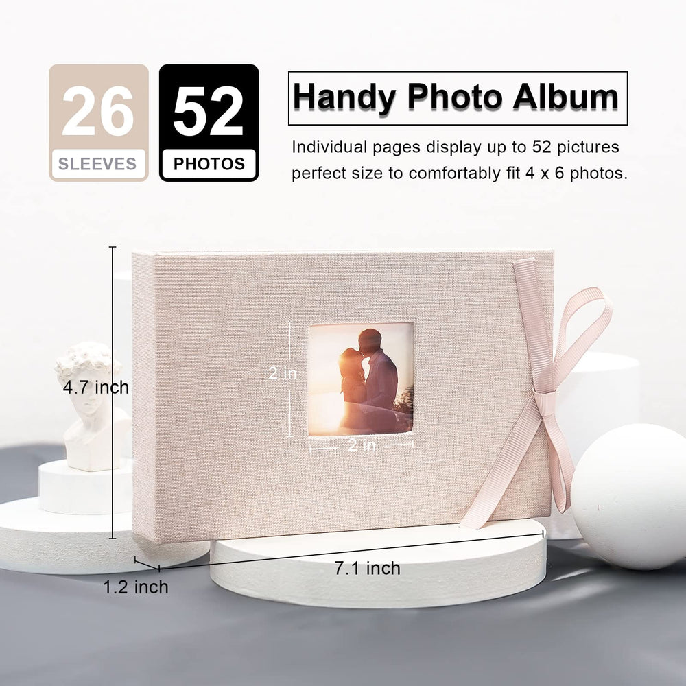- Original Bookshelf Albums – Small Photo Album 4x6, Mini Picture Book with 26 Pockets, Clear Pages Holds 52 Photos, Linen Fabric Cover Postcards Photobook Beige 2 Pack by Vienrose