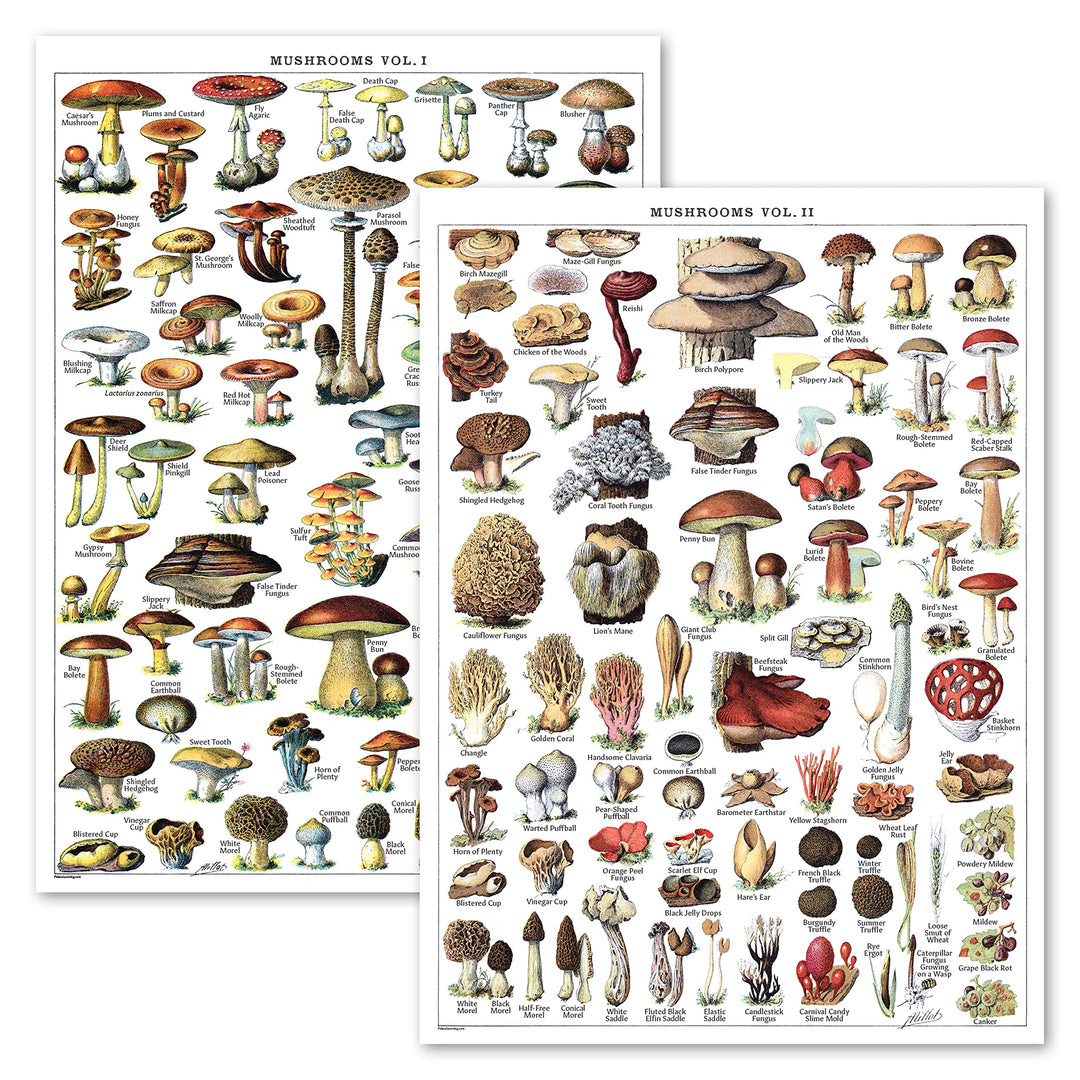 - Original Educational Charts & Posters – Vintage Mushroom Poster Prints - Mycology & Fungi Botanical Identification Reference Chart Volume 1 & 2 (LAMINATED, 18 x 24) by Palace Learning