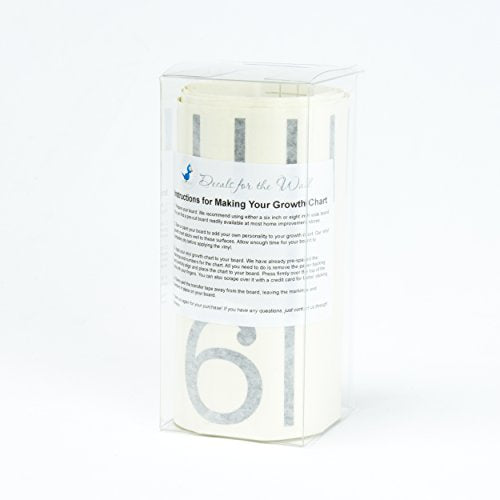 - FULL GROWTH CHART DECAL has ruler marks and six numbers in a stylish font.