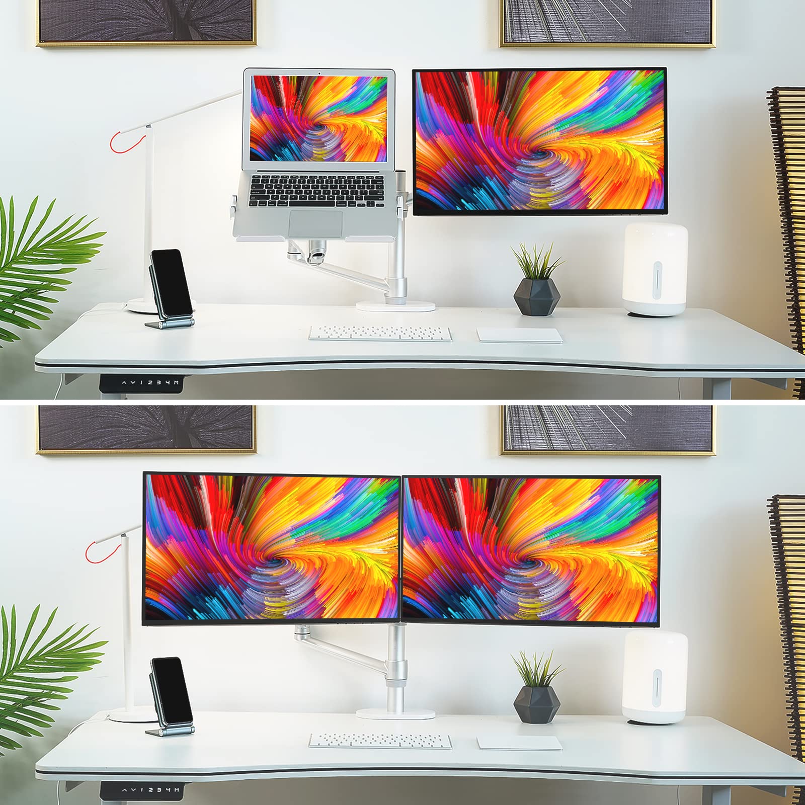 - Original Monitor Stands – Monitor and Laptop Mount, 2-in-1 Adjustable Dual Monitor Arm Desk Stand, Single Gas Spring Arm with Laptop Tray for 12-17 Laptop. Single Arm Stand/Holder for 17-32 Computer Monitor(3L-Pro-b) by Viozon