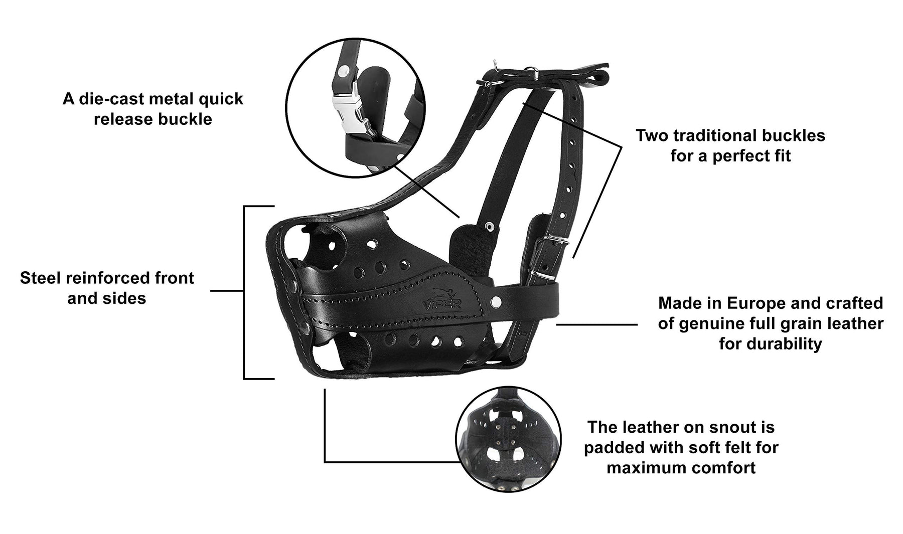 - Original Muzzles – Bravo Leather Agitation Muzzle with Quick Release Buckle for Dogs,Black by Viper