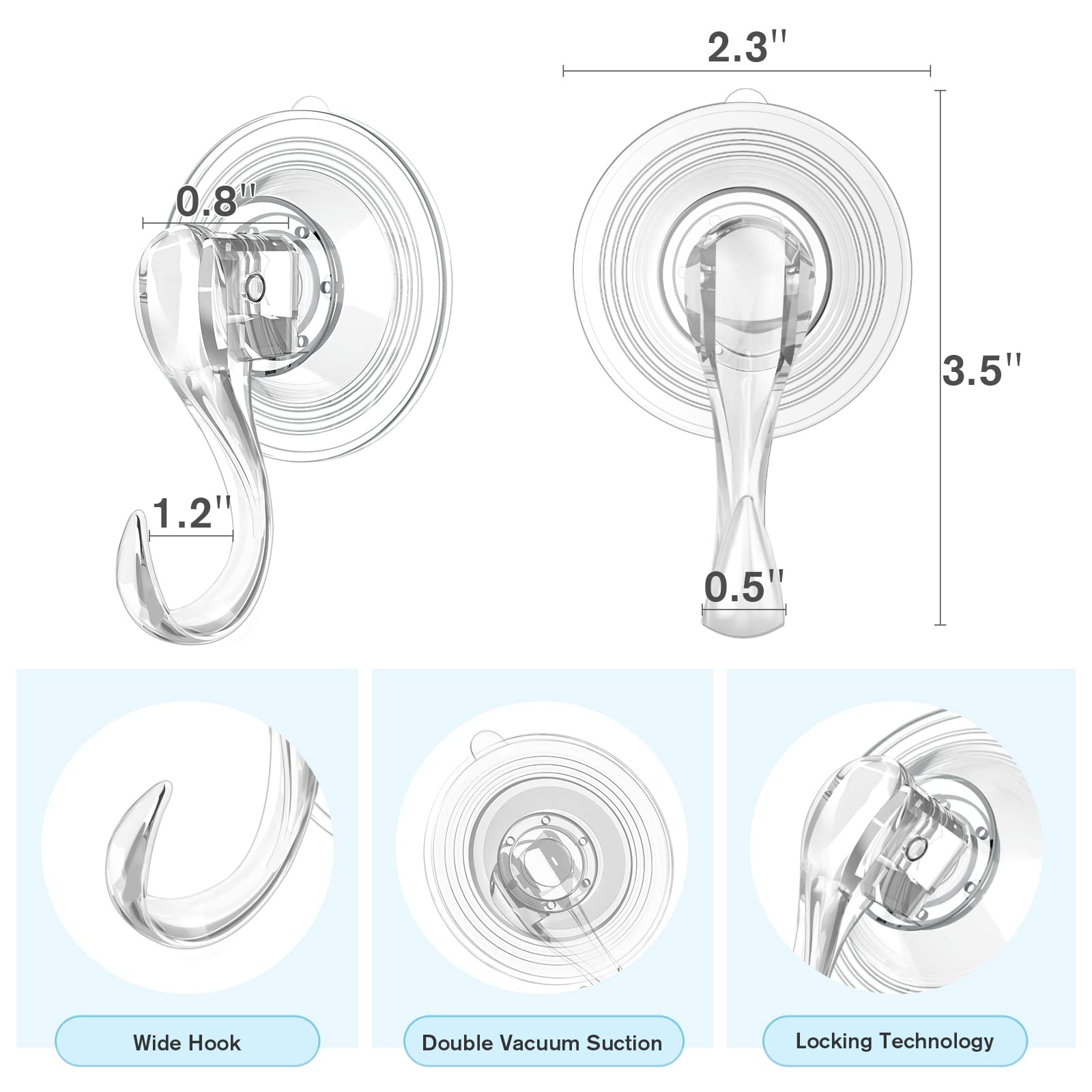 - Heavy Duty: Double vacuum suction cups creates stronger suction power; strong seal can holds up to 6.6 lbs, ensures it can work in different temperature indoor or outdoor; lock into place and stay put well, hold tightly without falling or sliding; the hook is large and curved, safer to protect items from slipping off, simple design yet meets versatile uses