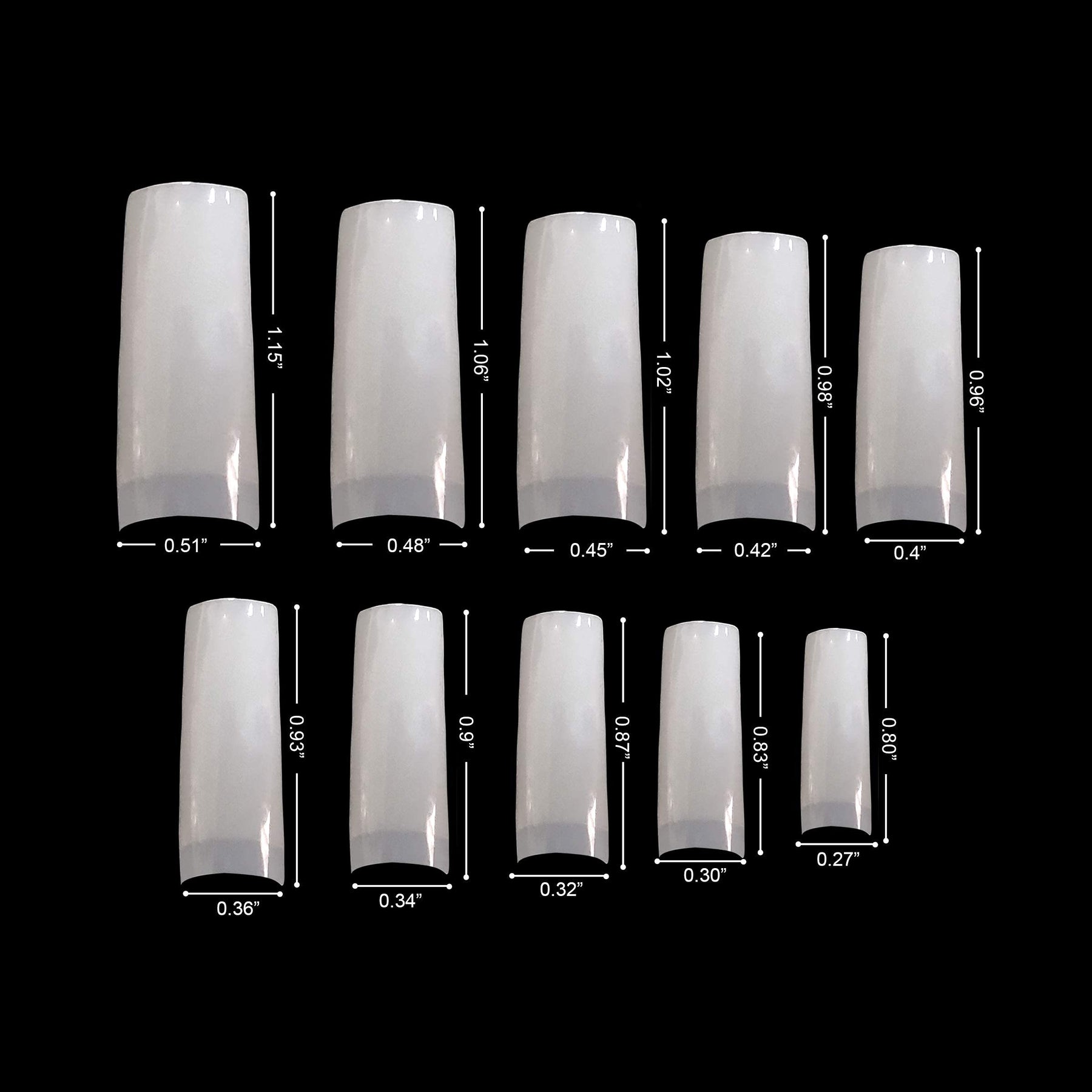 - Various Sizes: Vivace Natural/Clear Royal Salon nails come in 10 different sizes with 50 acrylic nails each in a segmented plastic case, so you can use and store them with ease. Various size options will easily fit every size and shape of finger nails.