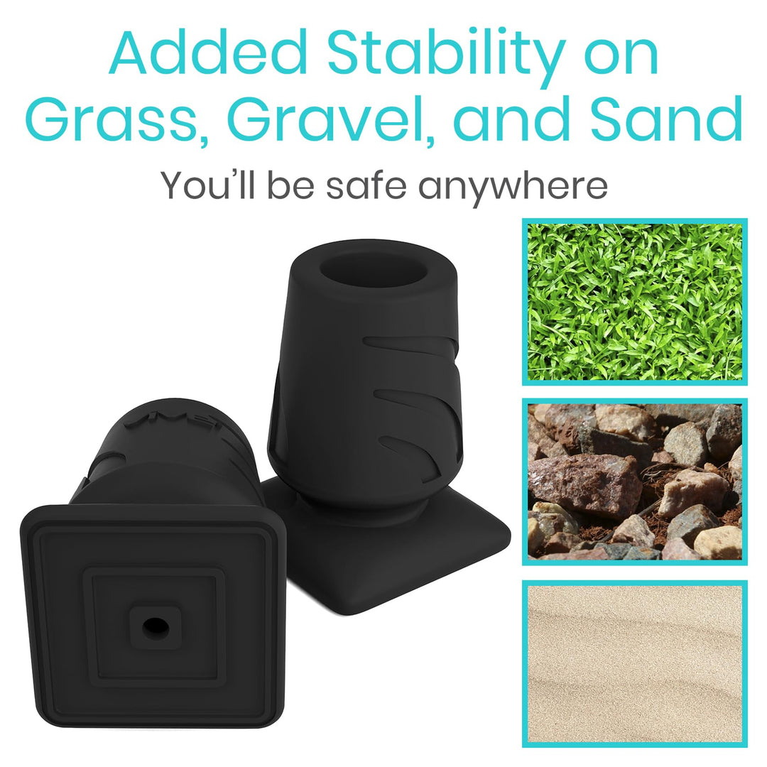 - FLEXIBLE NONSLIP BASE: Designed to flex and pivot, our shock-absorbing cane tips feature a square textured base that provides greater traction on both smooth and uneven surfaces. Non-marking, the non slip cane tip is safe for use on all surfaces including hardwood, carpet, and tile.
