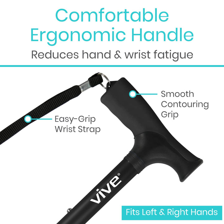 - Original Canes – Foldable Walking Cane for Men, Women - Collapsible, Lightweight, Adjustable, Portable Hand Walking Stick - Balancing Mobility Aid - Sleek, Comfortable T Handles (Black) by Vive