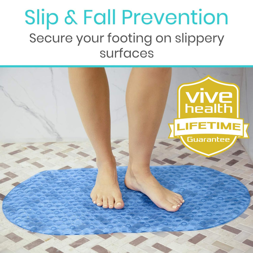 - Original Shower Curtains – Vive Oval Bathtub Mat - Nonslip Shower Floor Pad - Non-Slip and Non-Skid for Bath Tub with Strong Rubber Suction Cup Grip - for Baby, Elderly, Kids, Bathroom (Blue) by VIVE
