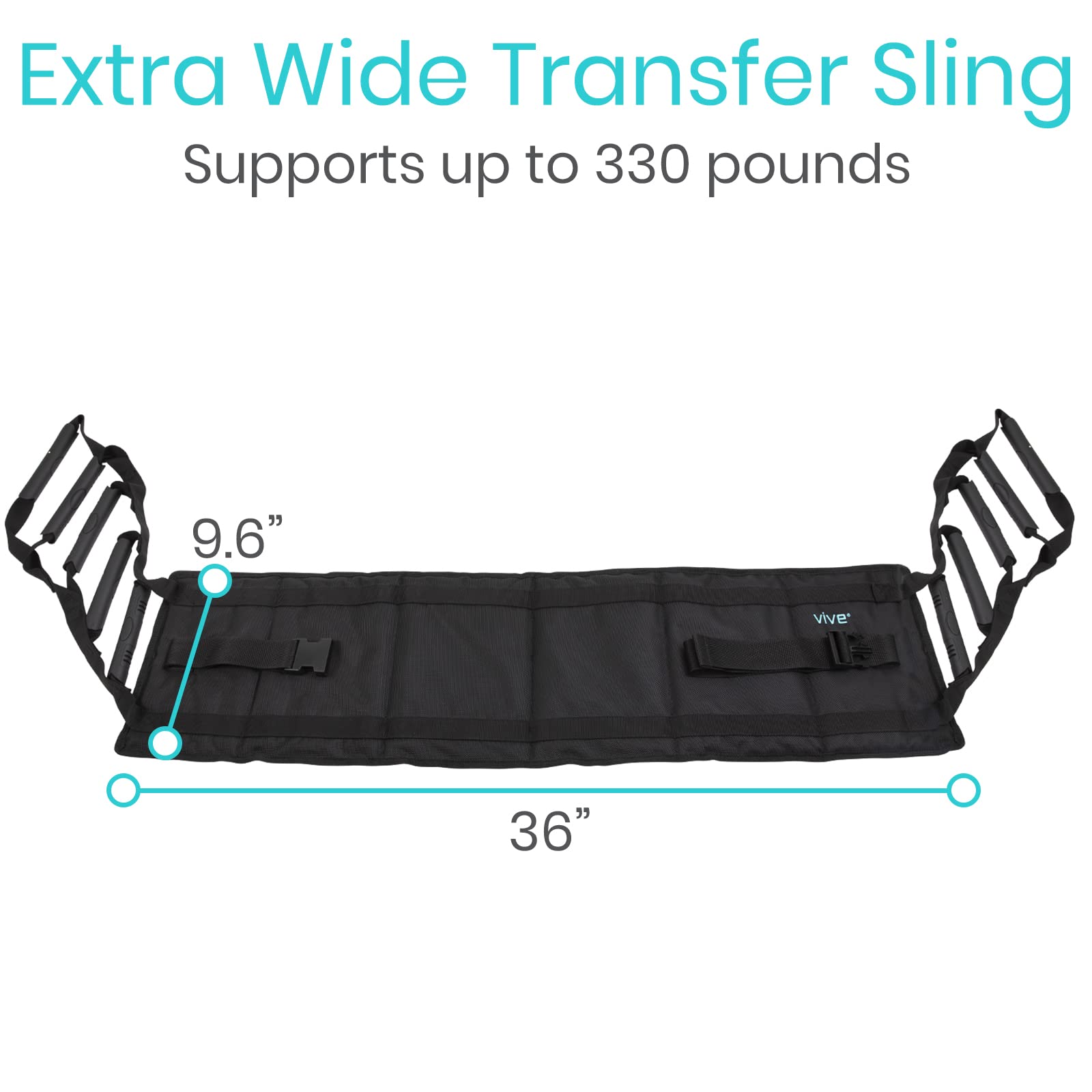 - UNIFORM PADDED HANDLES: Lightly textured for a secure grip, the Vive transfer sling features ten handles for safe use in a variety of situations. The black handles are also padded for greater comfort.