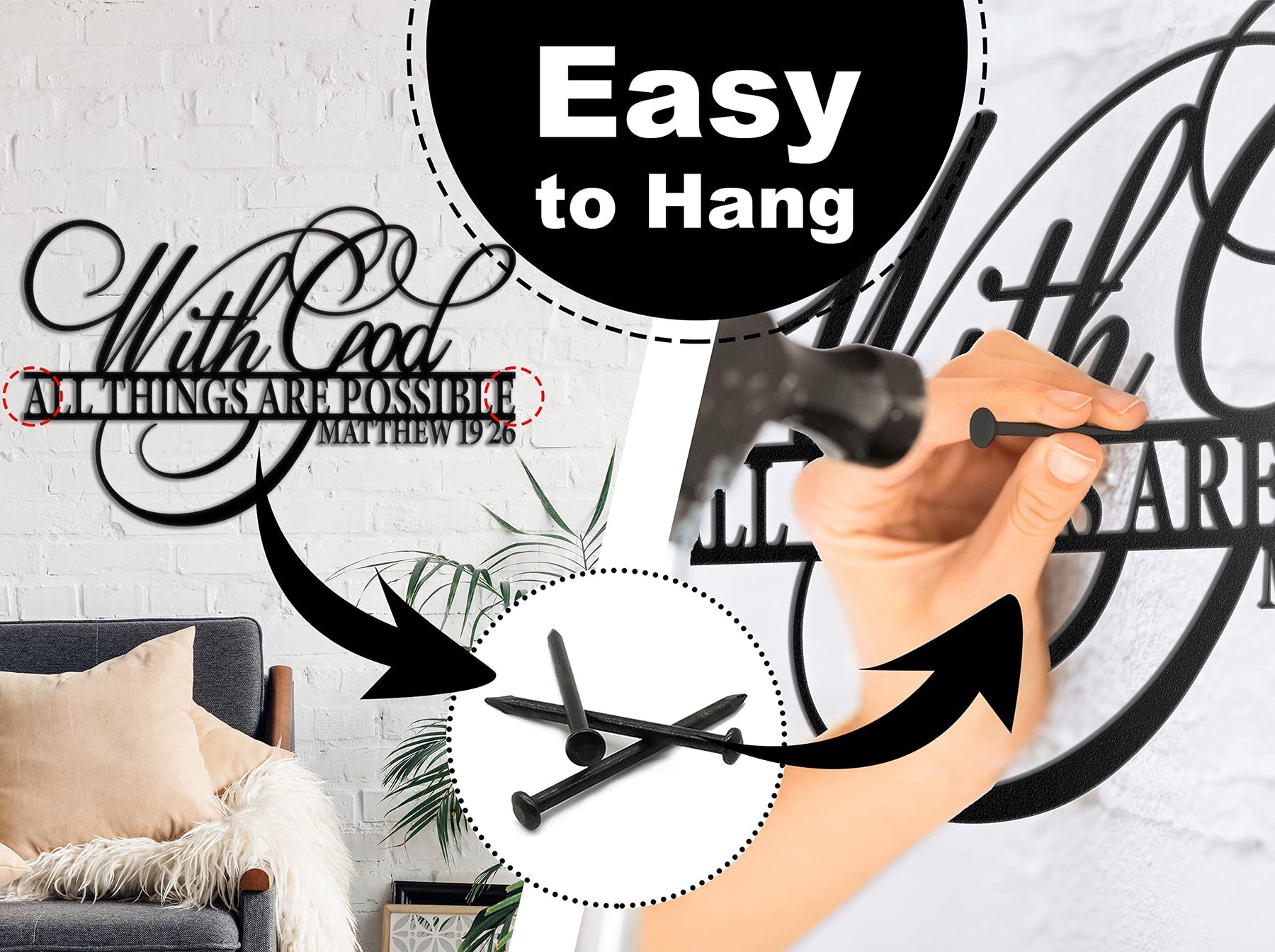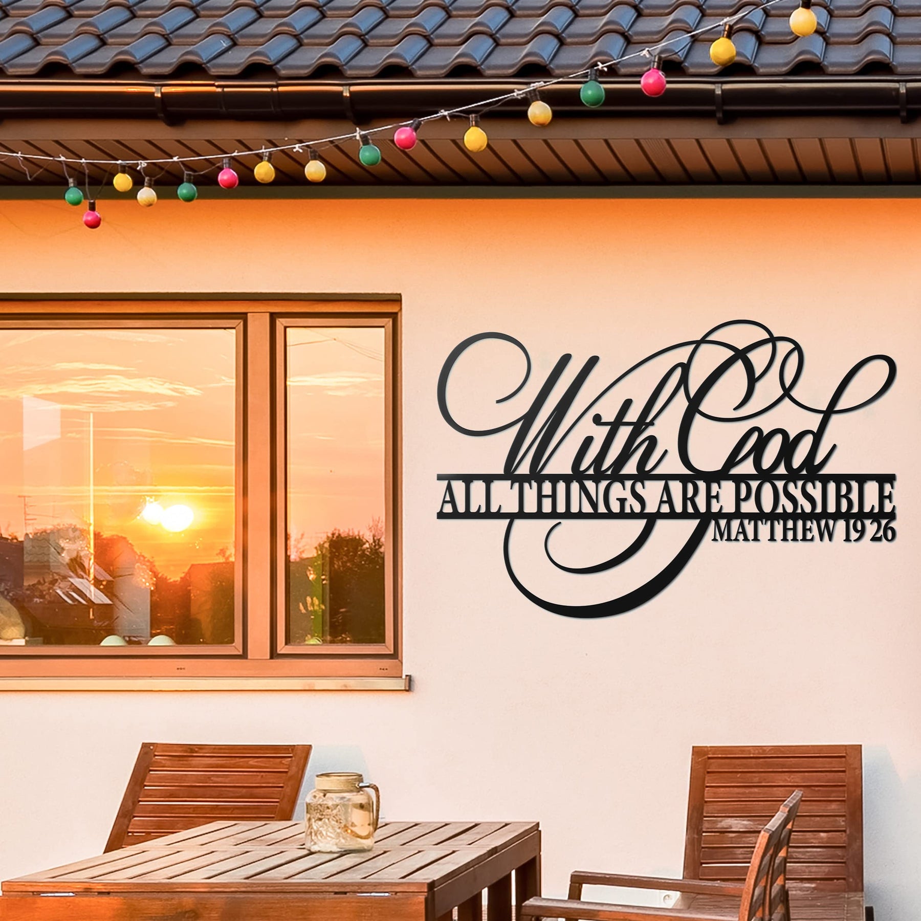 - Original Decorative Signs & Plaques – With God All Things Are Possible Sign Metal Wall Decor, 18X12 Inch Religious Scripture Black Christian Bible Verses Everthing Is Possible with God Bibical Wall Hanging Decoration by Vivegate