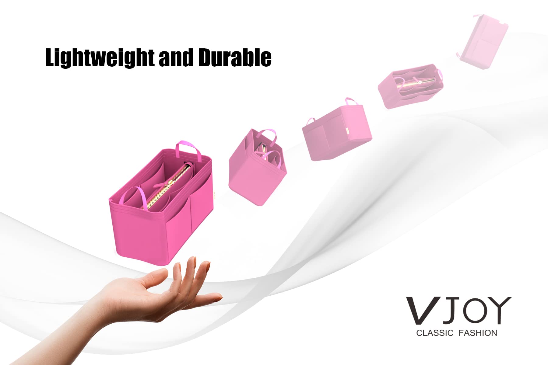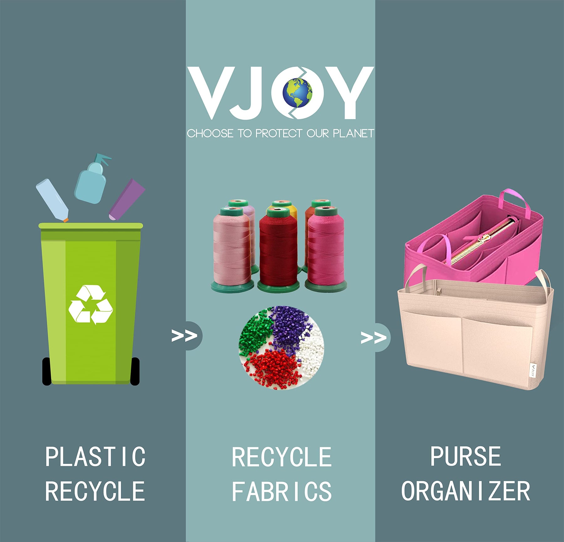 - MAKE THE SMART CHOICE TO PROTECT OUR PLANET : VJOY Purse Organizer use recycled plastic bottles, clean, chop, melt and turned into plastic chips. Chips are transformed into recycled fabrics, and make the Tote Bag Organizer Insert.