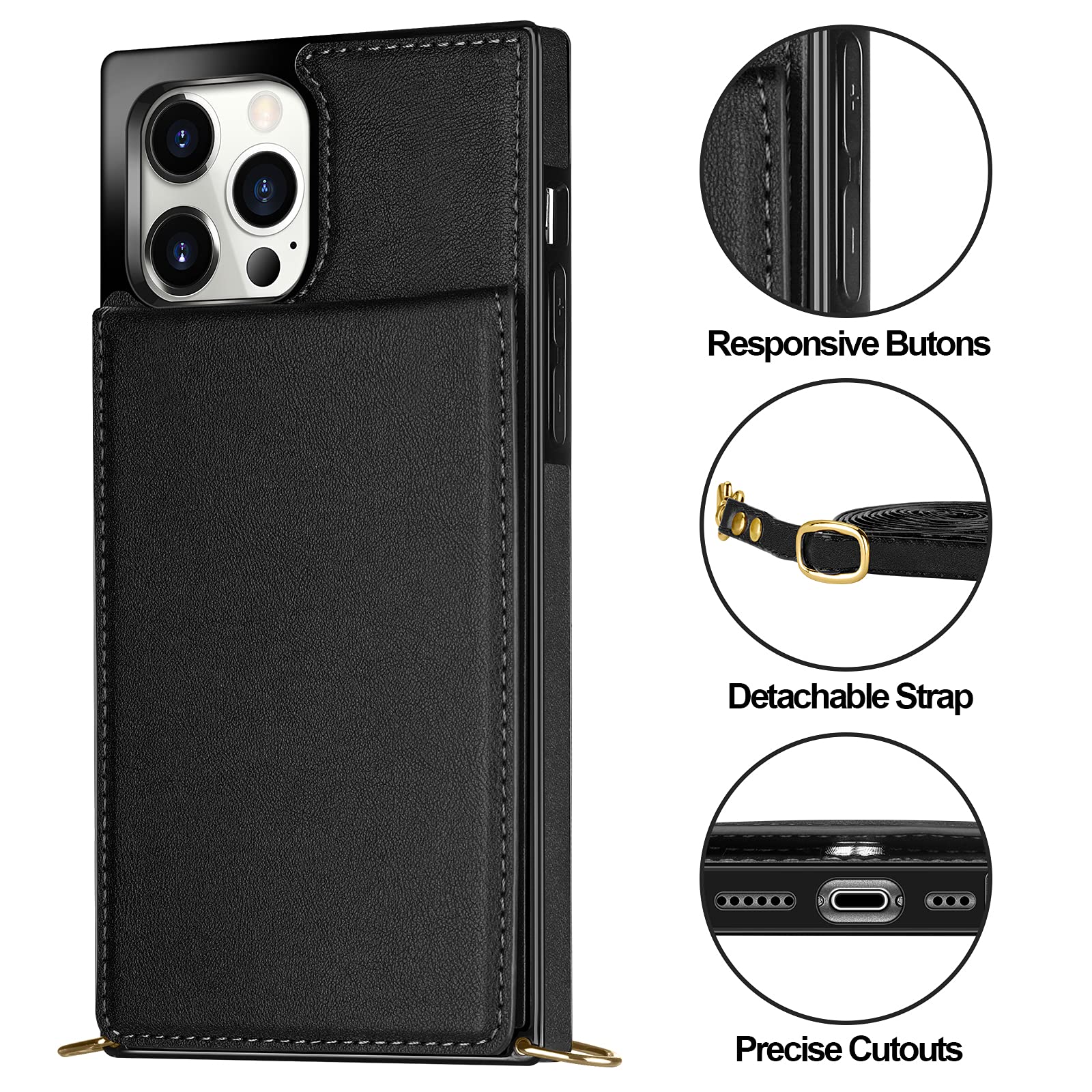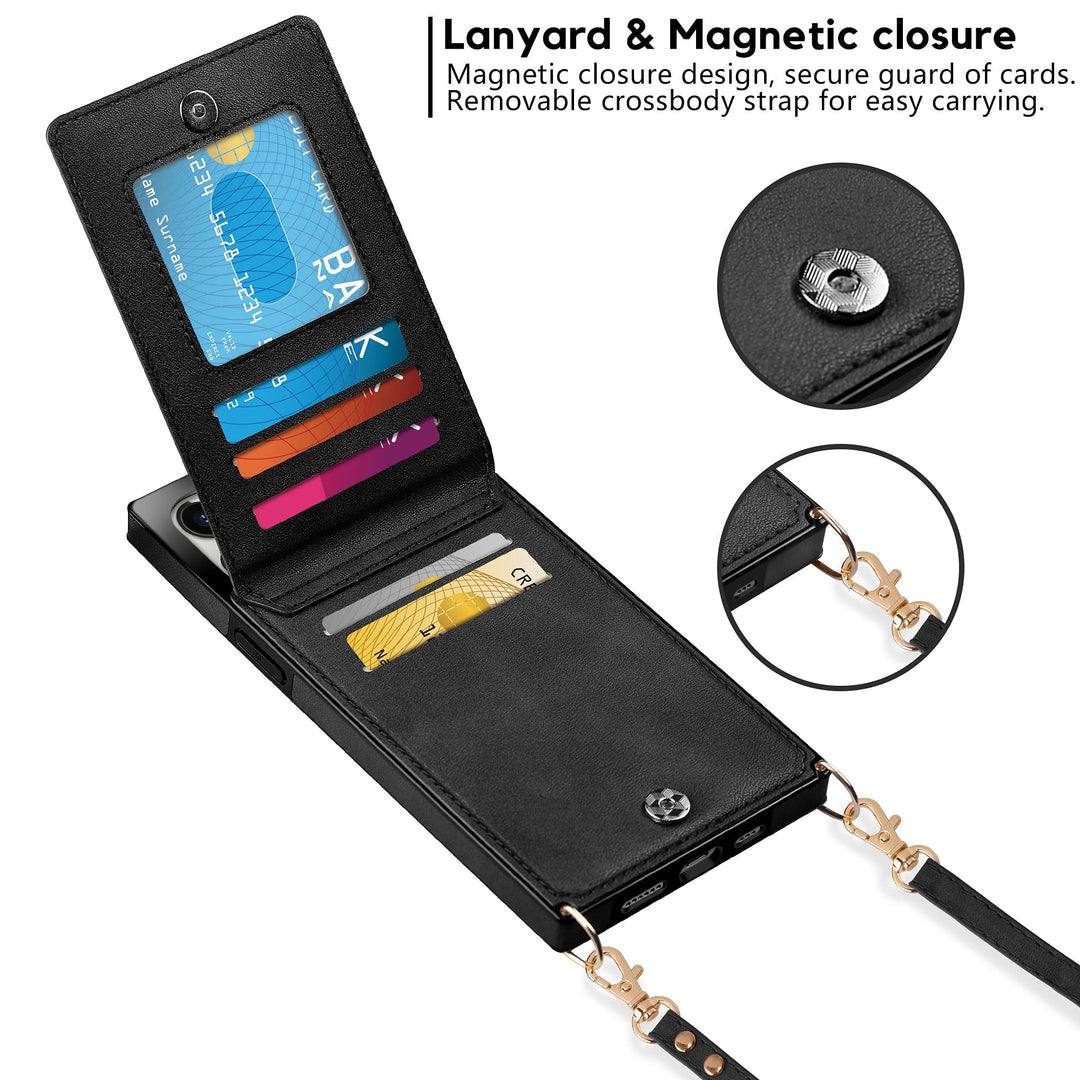 - Original Flip Cases – Compatible with iPhone 13 Pro Max Case Wallet with Credit Card Holder Lanyard Crossbody Strap Women Girls Leather Magnetic Clasp Kickstand Heavy Duty Protective Flip Cover Black by Vofolen