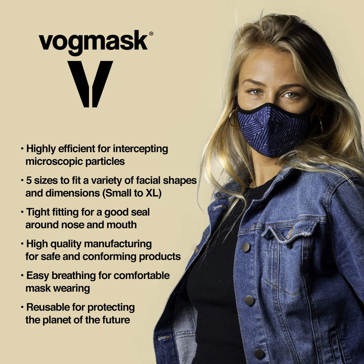 The benefits of filtering masks are confirmed by health providers worldwide. Manufactured under Quality Plan, Vogmask offers an important tool to protect health while raising a dialogue about protection of the planet of the future.