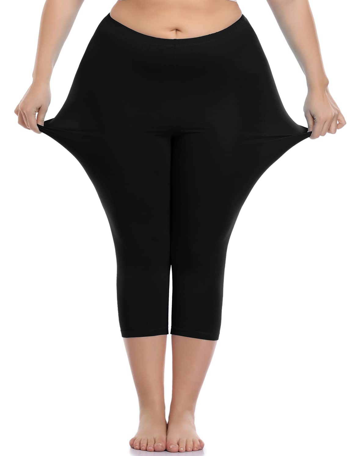 - Original Leggings – Women's Capri Leggings Plus Size Stretch and Comfy High Waisted Three-Quarter Leggings Plus Black by VOGUEMAX