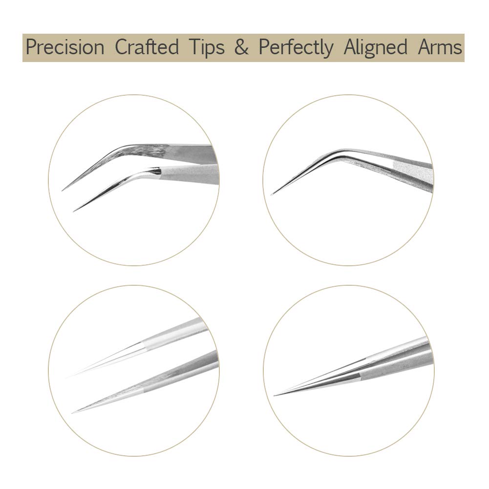 - PRECISION CRAFTED TIPS: The edge of every pointed tweezers is aligned to ensure a great tweezer every time for selecting an individual eyelash or to separate a client’s natural lashes.