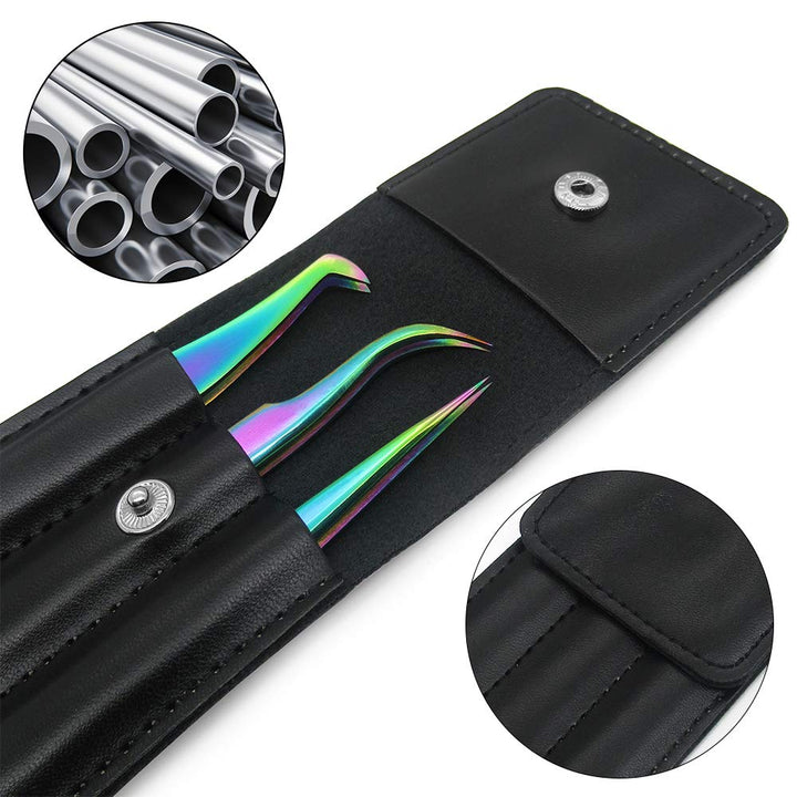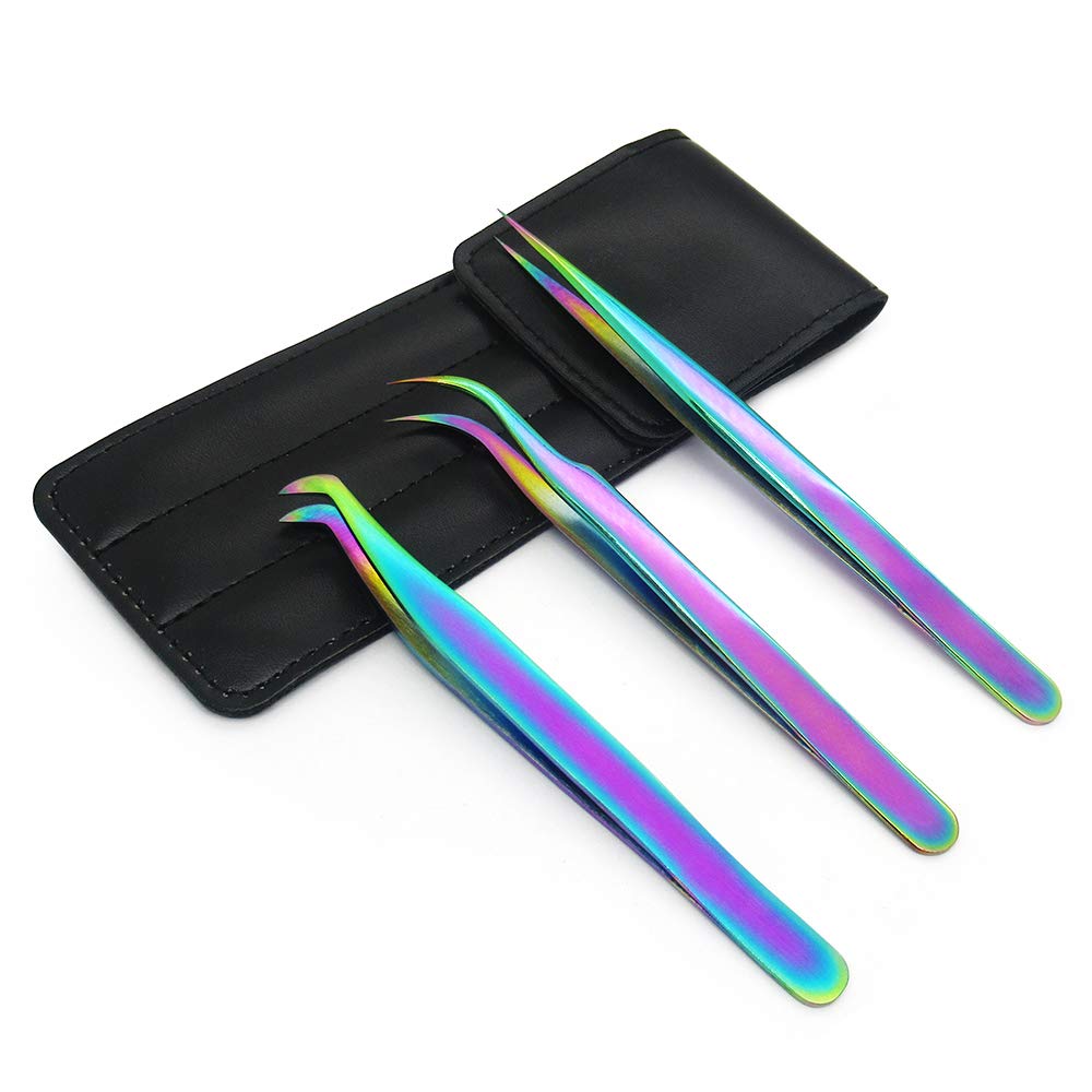 - Professional Tweezers for Eyelash Extensions:Eyelash extensions tweezers kits contains 5 different angles of tweezers.Two of them have a unique arc design,which is different from other lash tweezers,which can bring you a different new experience and make it easier to make a fan.Whole eyelash extension tweezers kits suitable for volume lash extensions and indivadual lashes.They can perfectly help you get the job done.