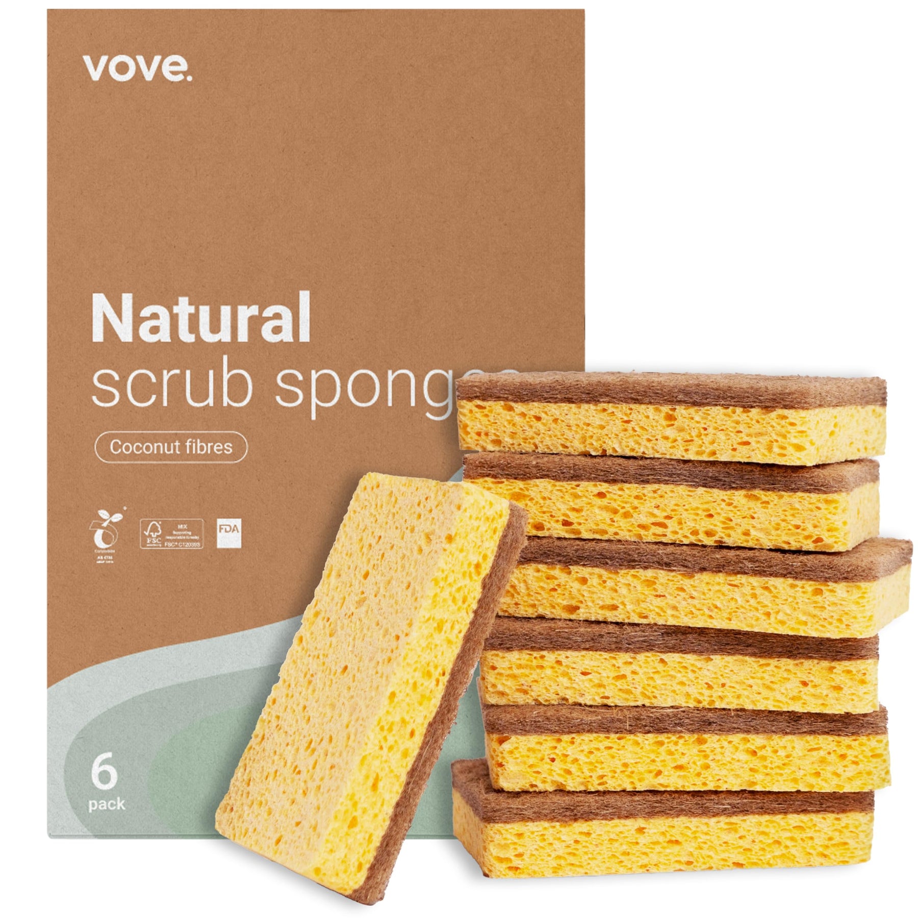 - Original Scrubs & Sponges – , Premium Natural Kitchen Sponge, Non Scratch, Long Lasting, waste Free, Compostable Sponge Kitchen, Natural Fiber, Eco-Friendly, Eartch friendly, Vegan, 6 Pack by Vove