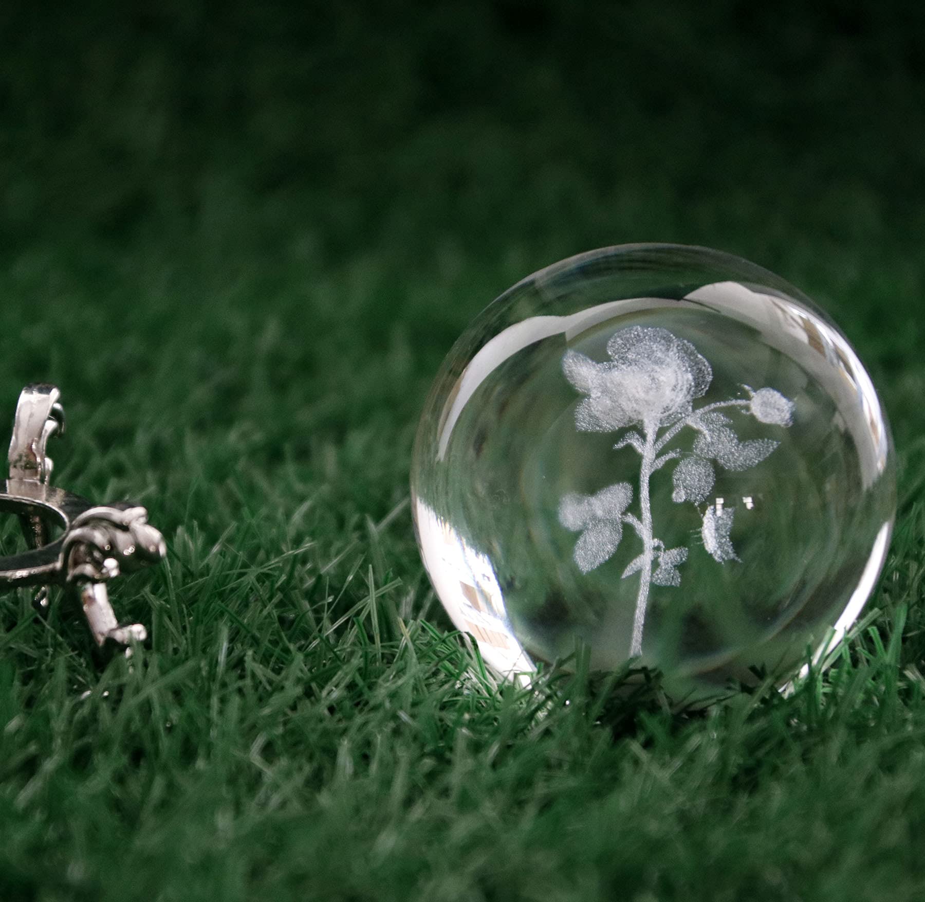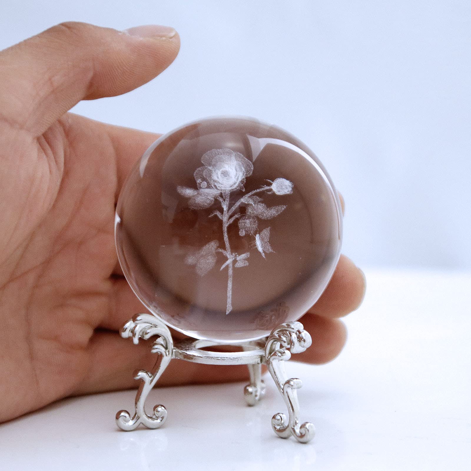- Diameter: 60mm(2.36in) 3D crystal ball.3D etching art on the inside of this crystal ball.The internal image of crystal ball is 3D laser engraving technology