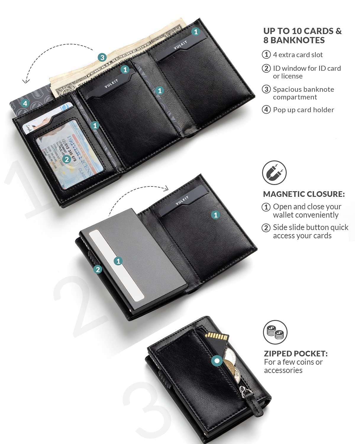 - Original Wallets – Card Holder Wallet with Coin Pocket Magnetic Closure Pop Up Cards With ID Window Leather Wallet for Cash & Credit Cards, Black by VULKIT