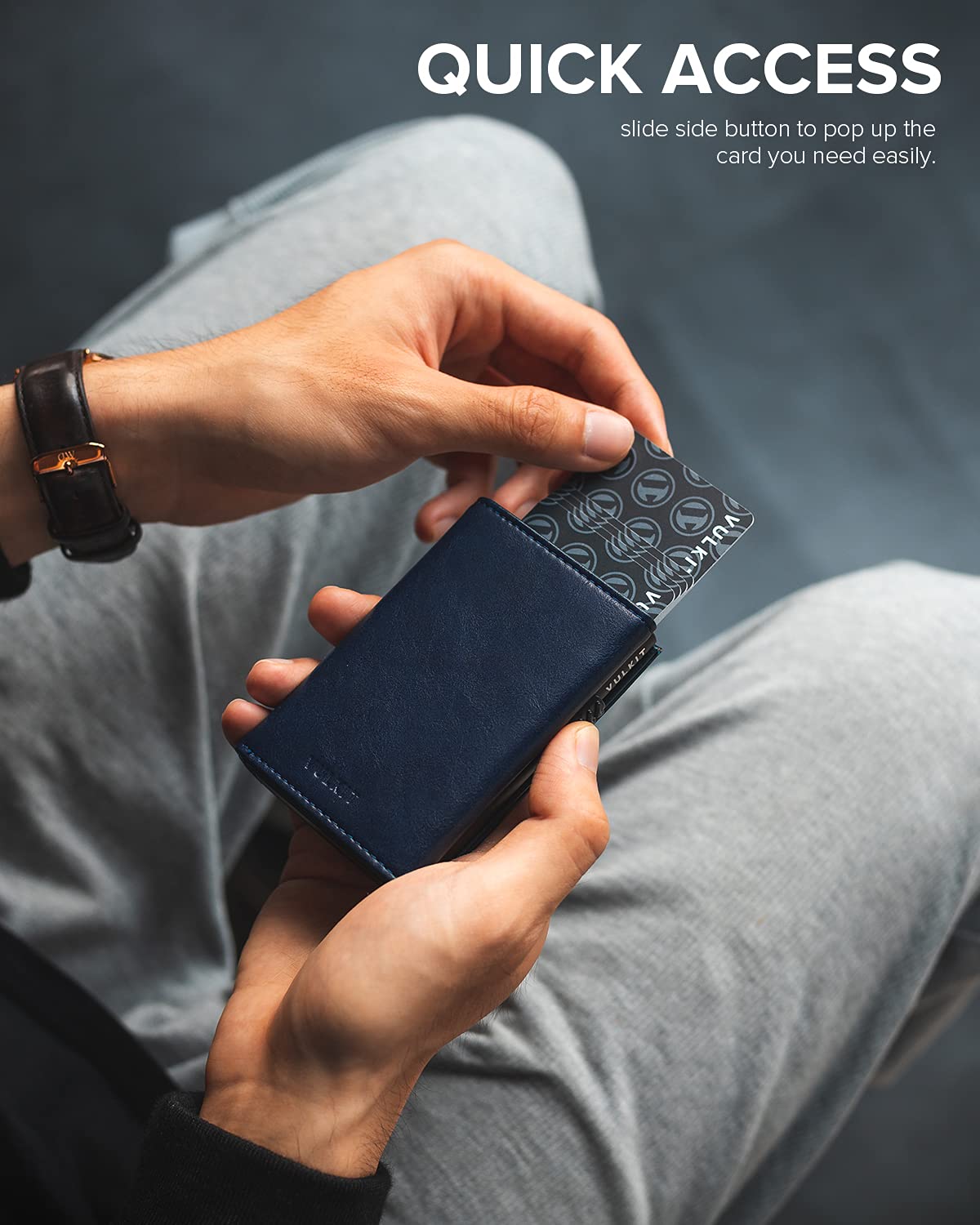 - QUICK ACCESS POP UP CARDS: Easy slide the button and get the neat pop-up cards. Cards hold well in card case and they won't drop out.