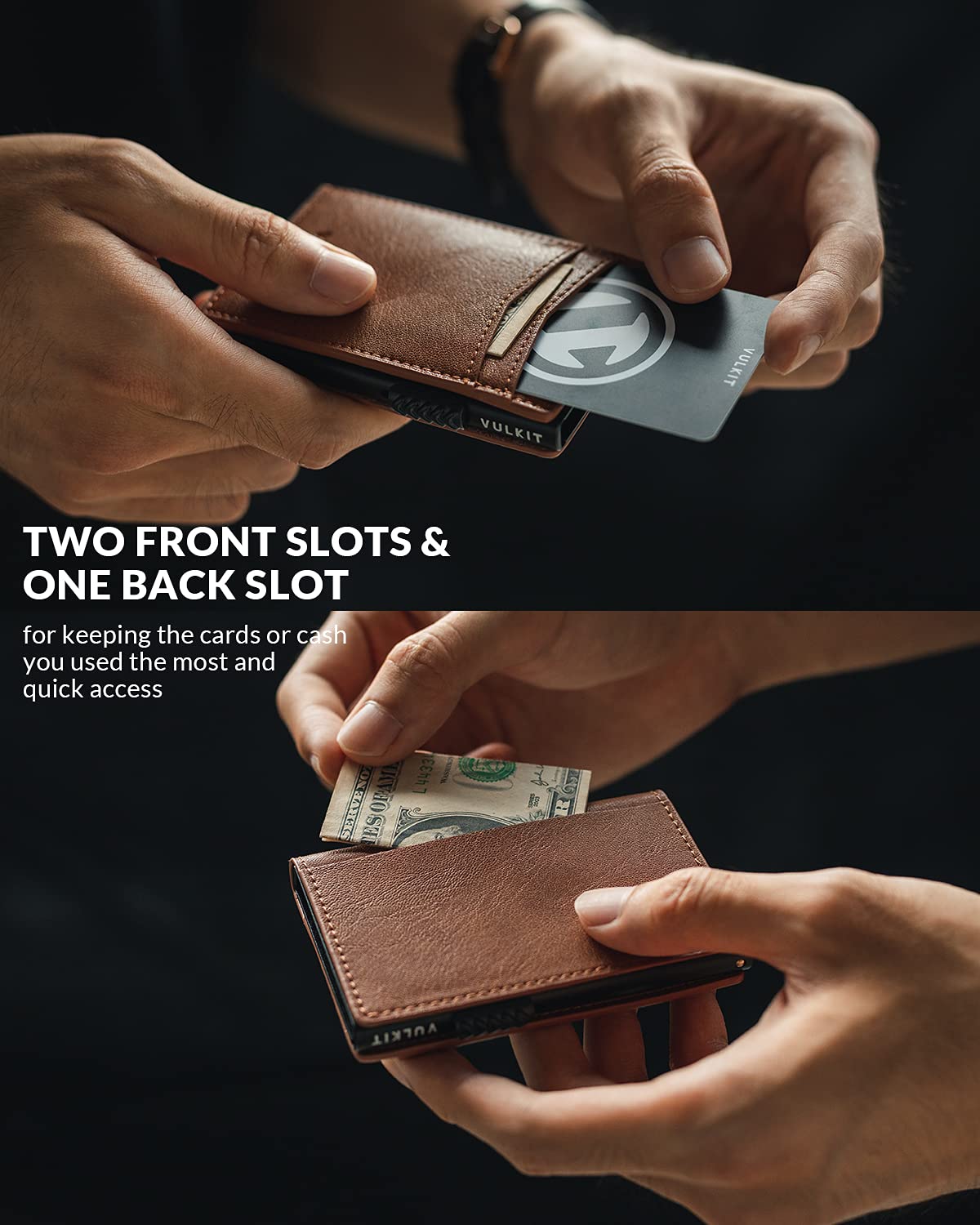 - Original Business Card Cases – Men's Slim Wallet Pop Up Card Holder RFID Blocking Metal Wallet Minimalist Design Holds Up to 11 Cards by VULKIT