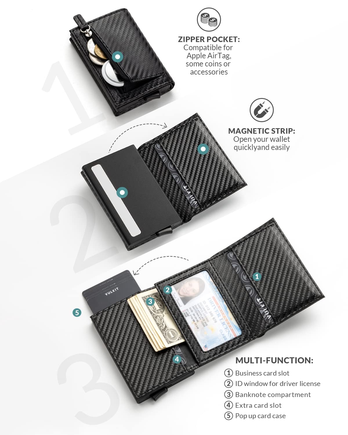 - Original Wallets – Pop up Wallet RFID Blocking Leather Credit Card Wallet with Banknote Compartment, ID Window & Coin Pocket (Carbon Black) by VULKIT