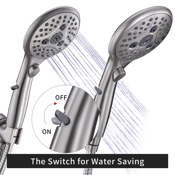 - The NEWEST 6+1 SETTINGS:The upgraded handheld showerhead has a Button to switch 6 spray modes: Rain, Massage, Bubble Oxygenation, Rain & Massage, Rain & Bubble Oxygenation, Rainstorm,addition with one water saving pause switch,everything is for the best shower experience.