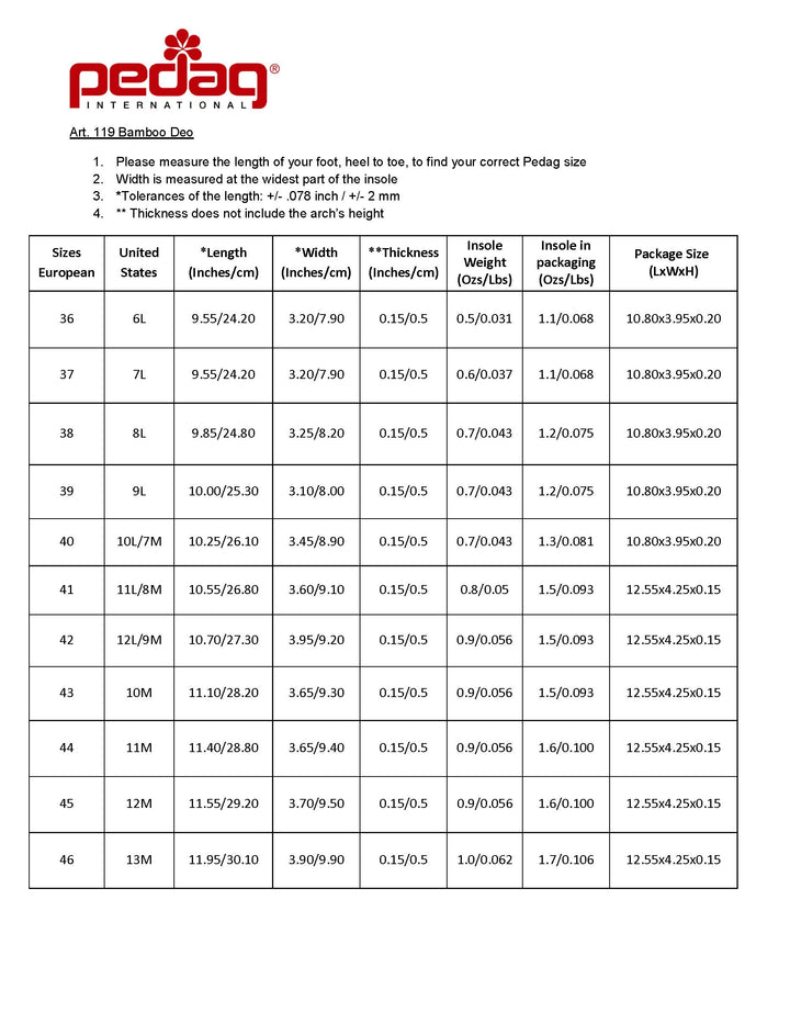 - Pedag w12/m9/eu 42: pedag bamboo deo insole, w12/m9/eu 42,3.5 ounce