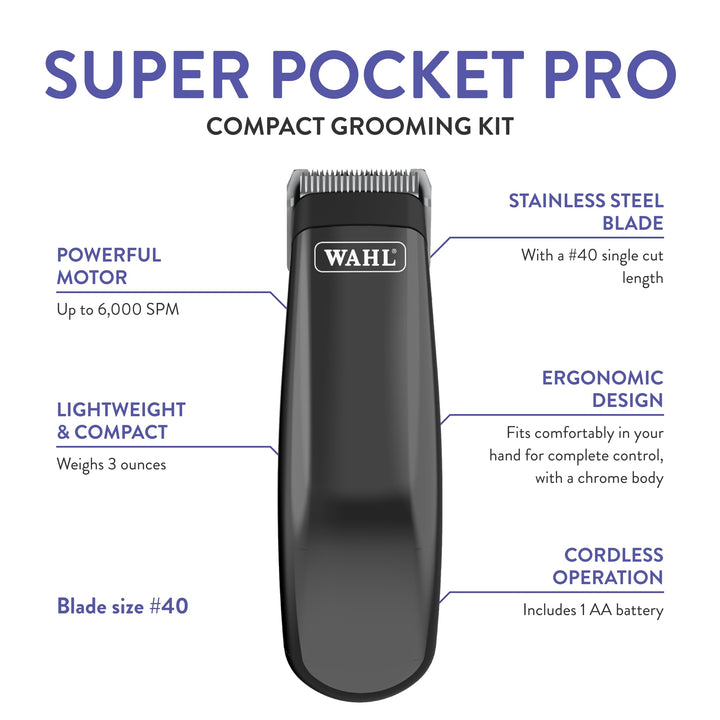 - The Wahl Super Pocket Pro cordless trimmer is the perfect size trimmer for quick touchups at home, ensuring your pet always looks its best when it matters most