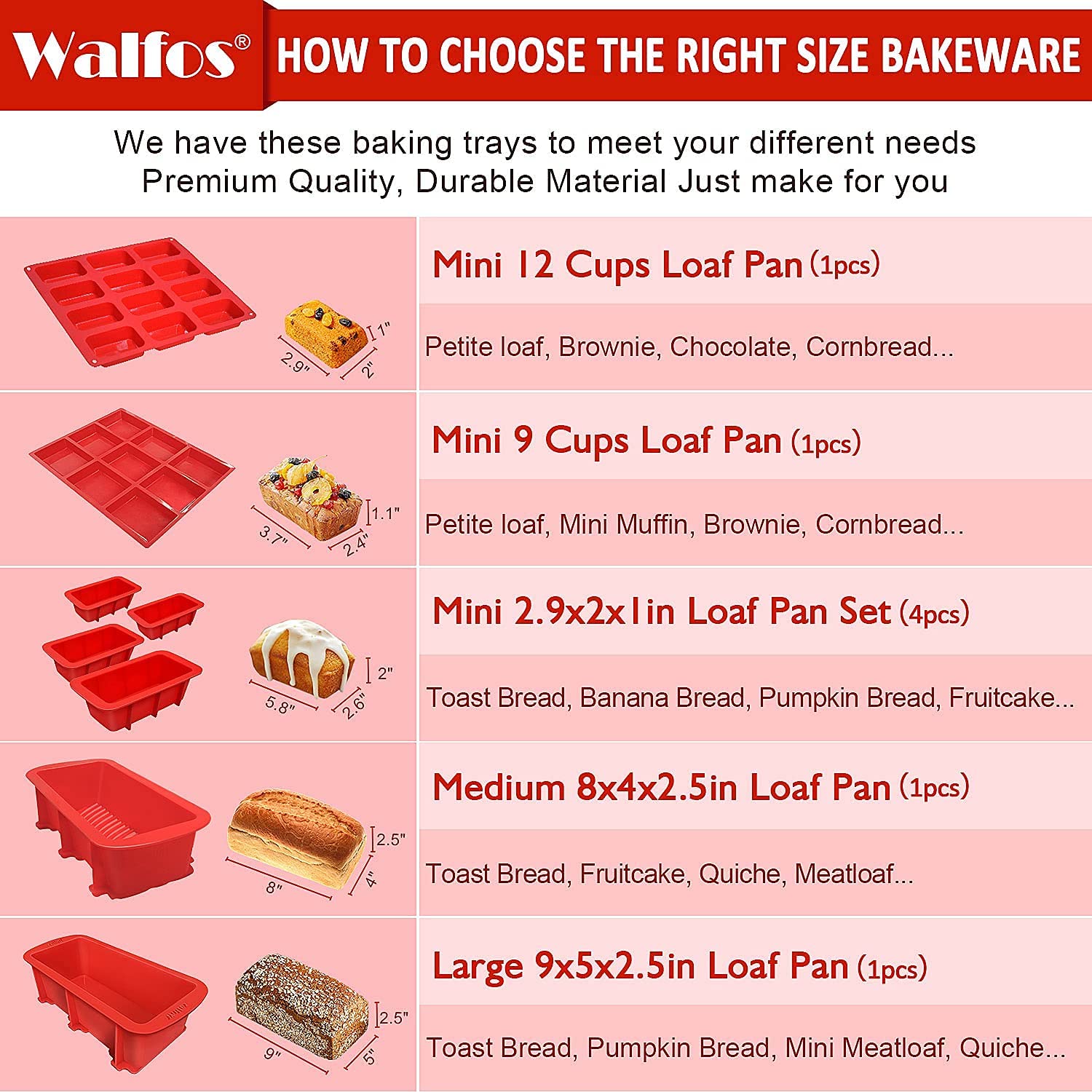 - EASY TO USE & RELEASE: Fit perfectly in your oven, just fill the baking pan following recipe instructions, and simply place the pan on a cookie sheet for stability. Walfos flexible silicone mini bread pans offer a non-stick surface that allow the baked goods to pop right out with a little push from the bottom.