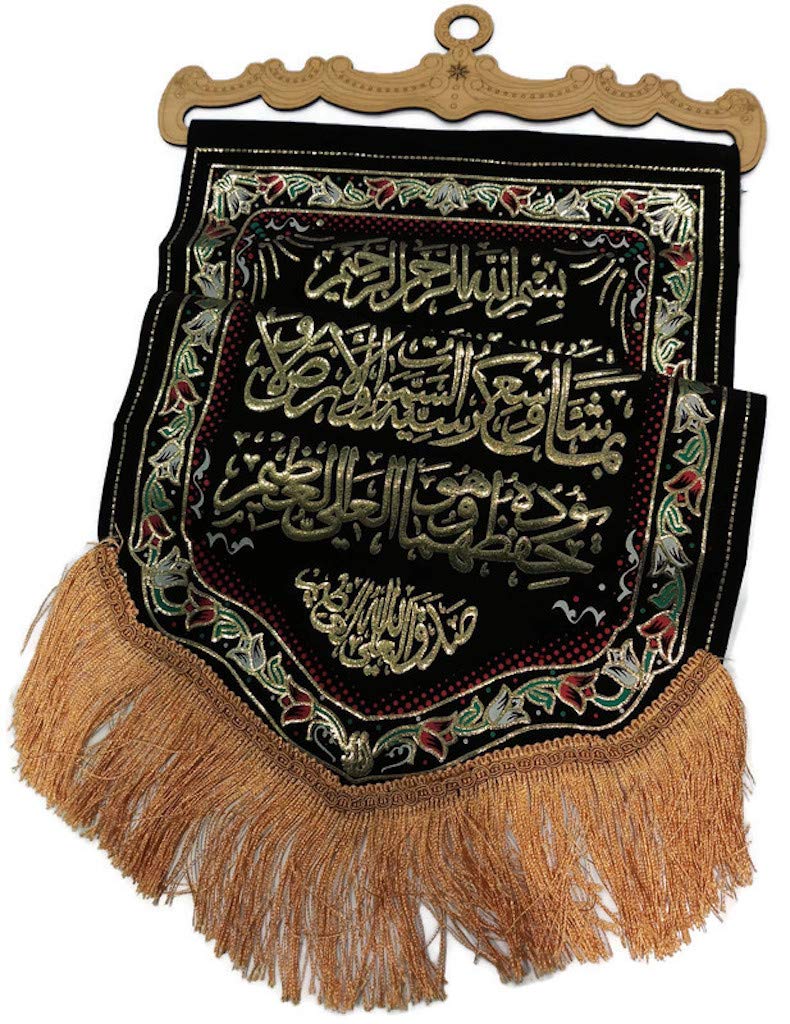 - Beautiful Islamic art Arabic Al-Quran printed calligraphy fabric poster tapestry with wooden hanger and beautiful decorated tassel
