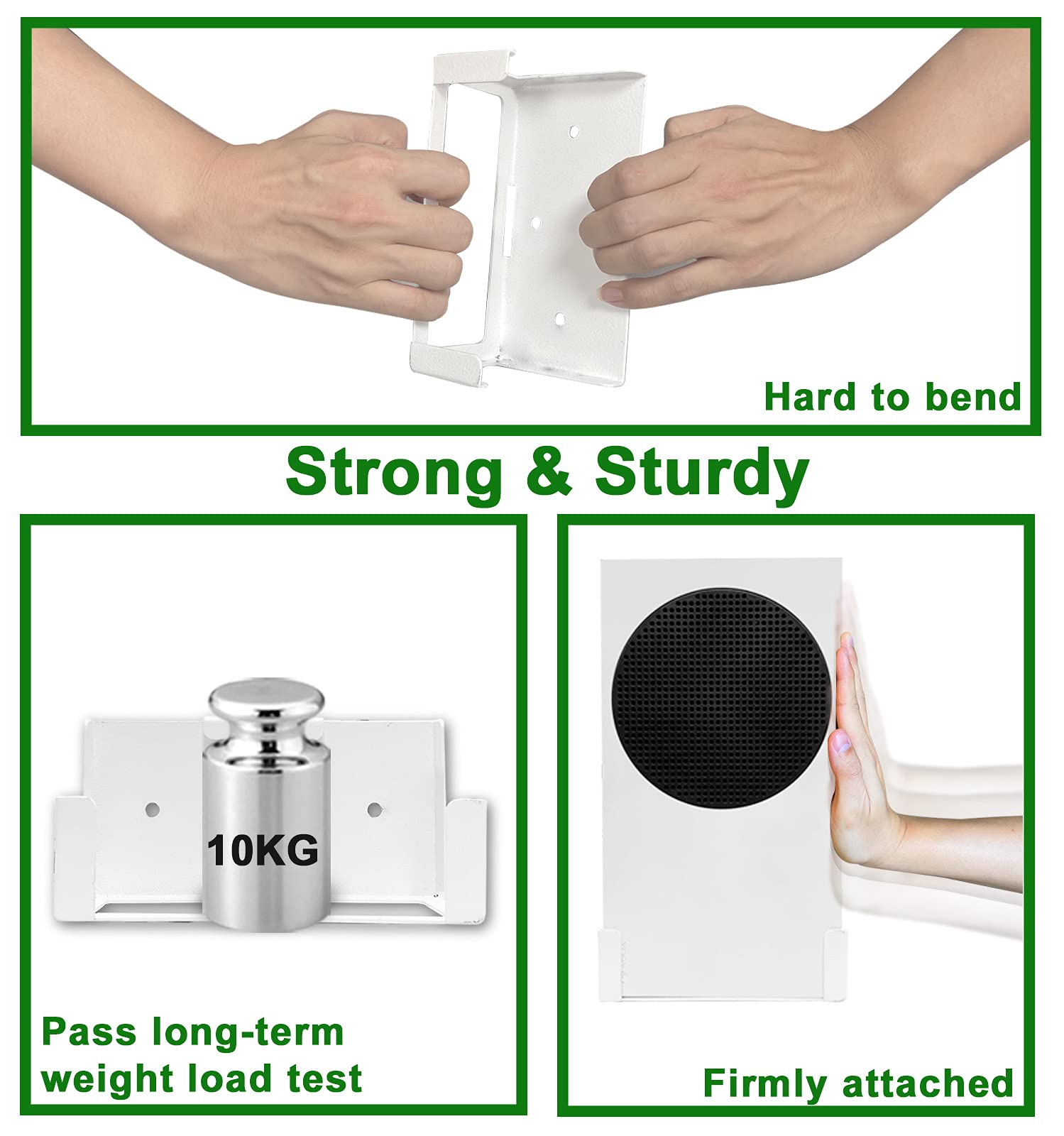 - STRONG & STURDYConstructed with heavy duty steel materials & durable powder coated finish, which makes the wall mount sturdy and ensures mounted console & controller stable and secure without scratch, even avoid the possibility of Xbox Series S falling over caused by the small children or pets at home