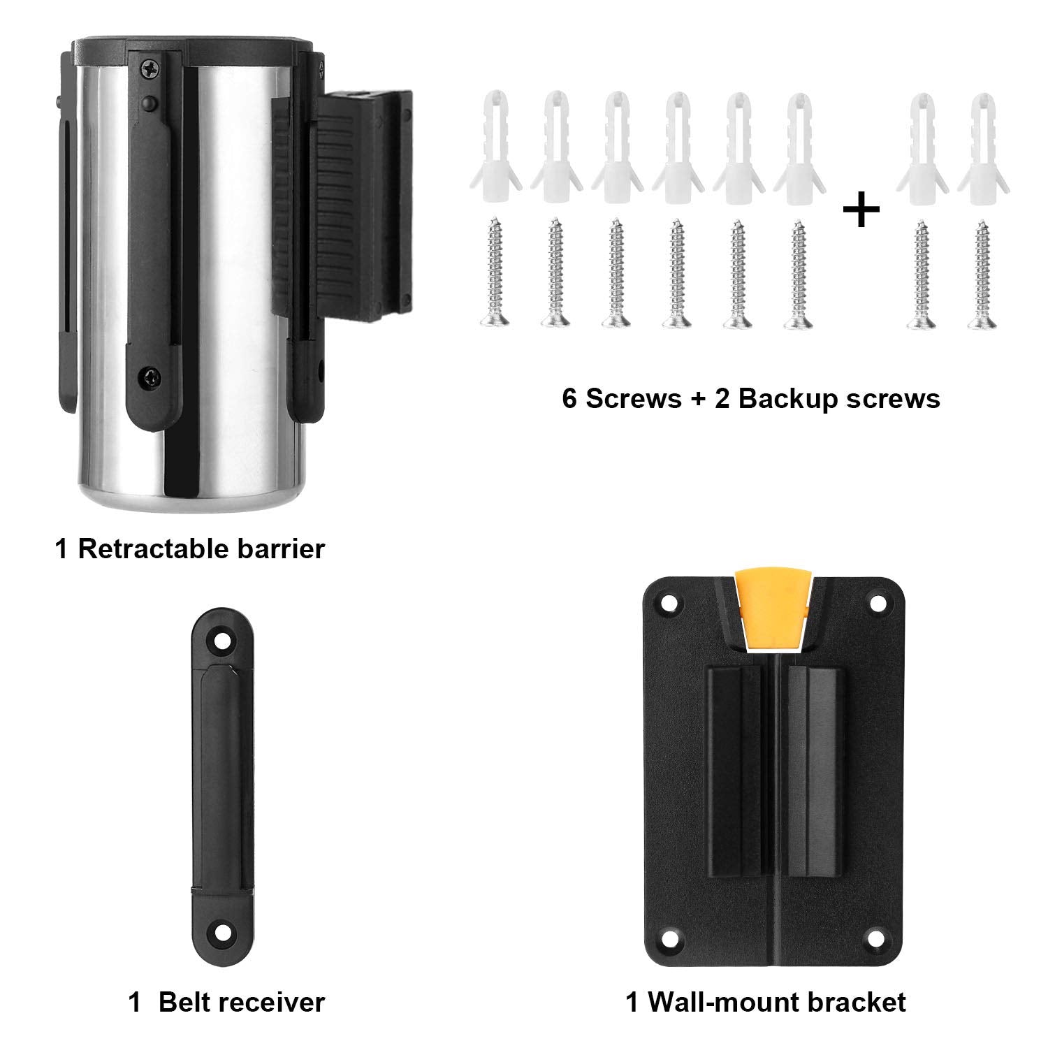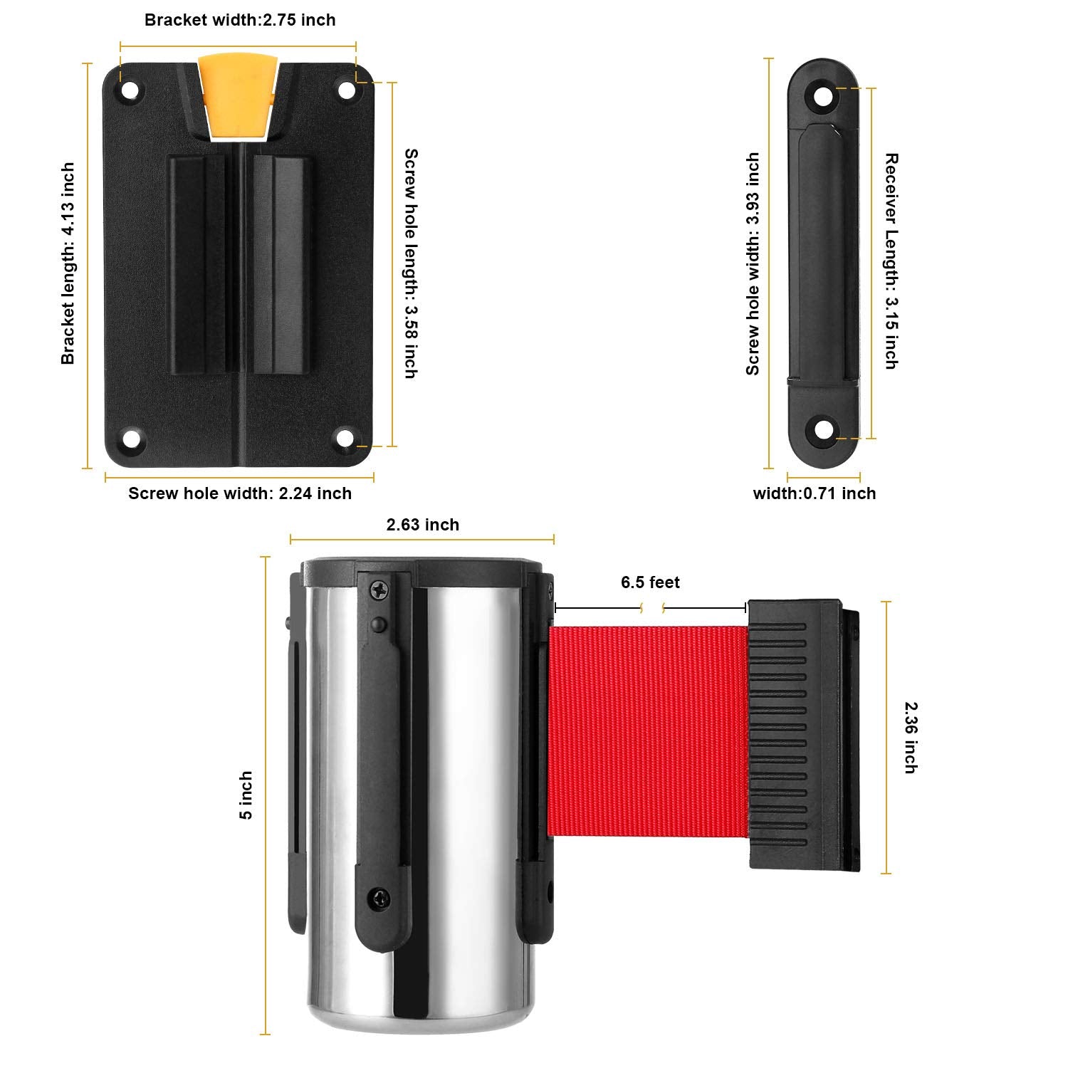 - Original Rope Barriers – Wall Mounted Retractable Belt Barrier, Stainless Steel Rope Safety barriers with 6.5ft red Belt, Barking System Supported by CCLIFE