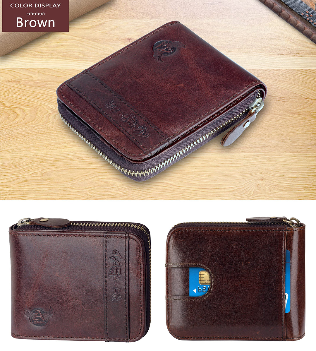 - Enough space,contains 12 card holders,1 ID window,2 bill pockets,1 zip coin pocket.Zipper around design makes your wallet stands out from the common purse.