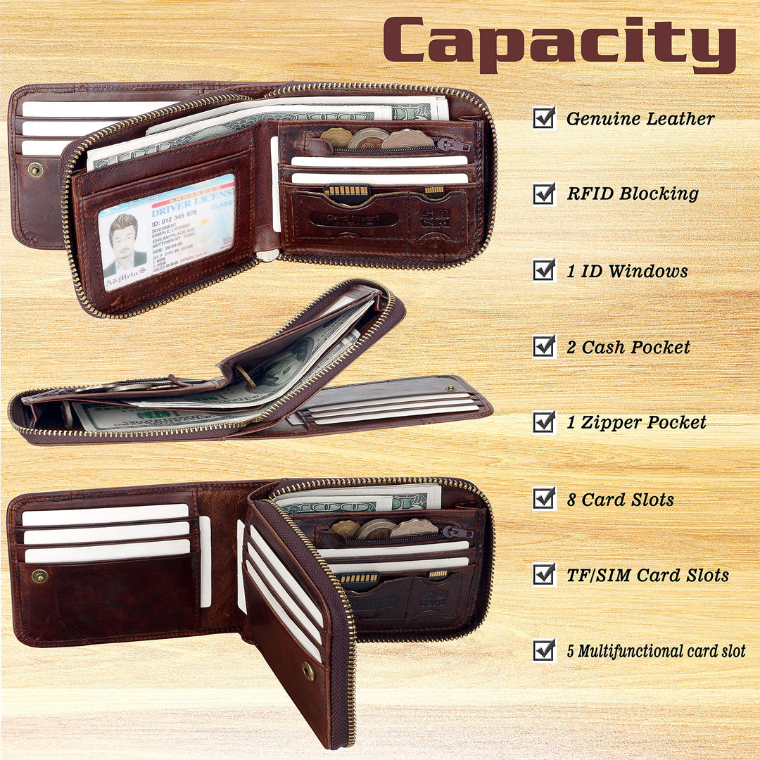 - Original Wallets – Wallet for Men Leather Zipper Bifold Wallet RFID Blocking Credit Card Holder with Gift Box Brown by Admetus