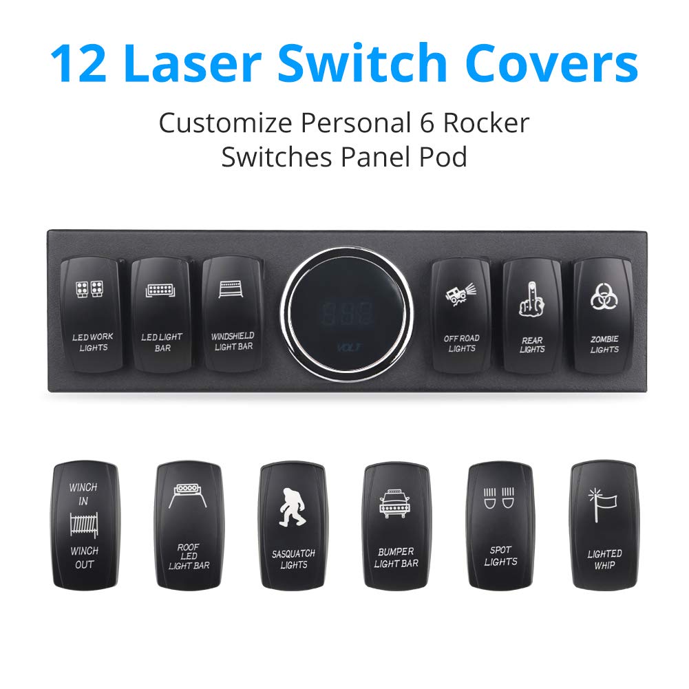 - Come with instruction,Easy Installation: plug and play,Never Tangle No frustrating wiring Installation takes only 20 Minutes,Come with 12 Switch Covers You can use removal tool attached to replace the switch covers by yourself,Customize Personal 6 Rocker Switches Panel Pod.