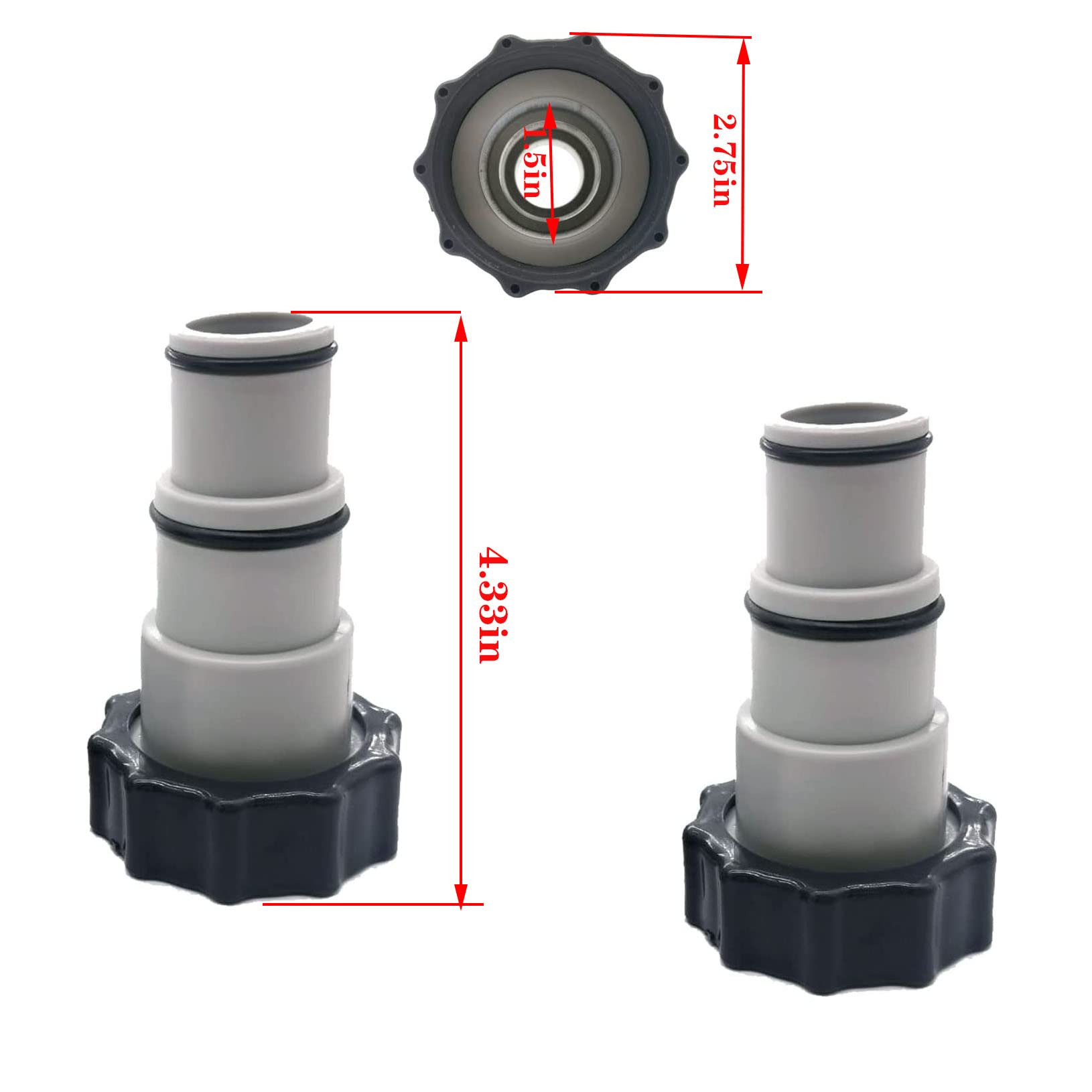 - Material: The hoses plunger valve connector connector is made of plastic that does not deform or break and is suitable for 1.5 to 1.25 hoses to create a sealed space and prevent leakage. Plunger valve pump connector is equipped with 2 stainless steel metal clips that can be adjusted with pool fittings to make the connection firm and prevent damage.