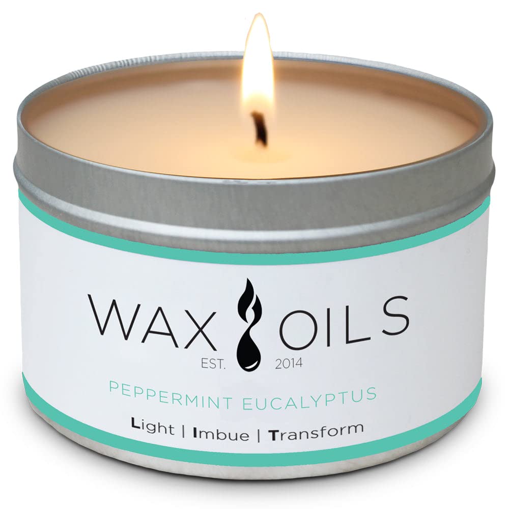 - Original – Wax and Oils Soy Wax Aromatherapy Scented Candles, Peppermint Eucalyptus, 8 oz by Wax and Oils by WAX OILS EST. 2014