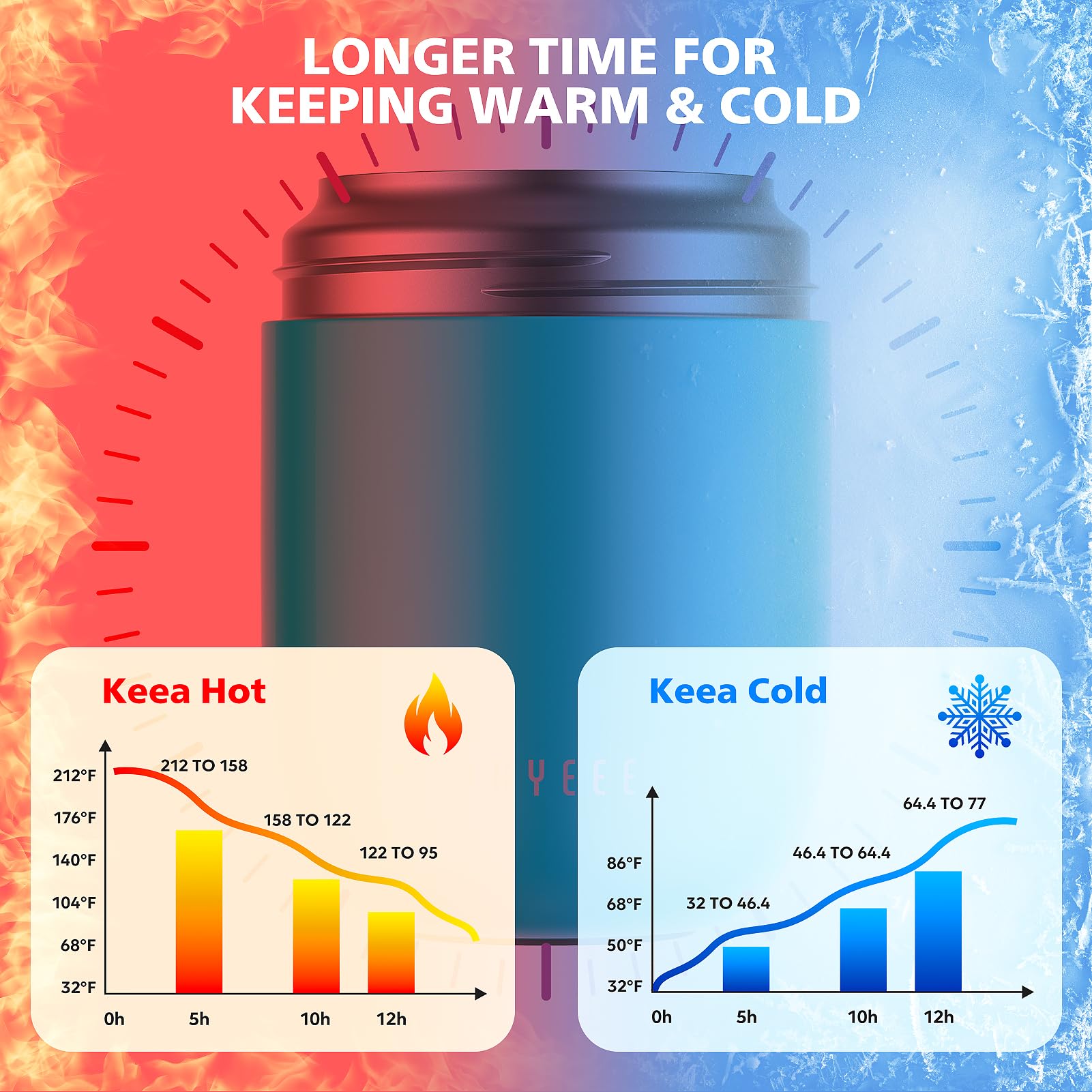 - Longer Time to Keep Warm & Cold - Provided maximum retention of heat or cold. 16 oz food containers can keep food or drinks for up to 6~12 hours as its double-walled insulation technology. NOTES: To keep foods hotter for a longer time, we suggest PREHEATING/PRE-CHILL your food jar by filling it with hot/ice water for 5~10 minutes before dumping it out and then adding foods.
