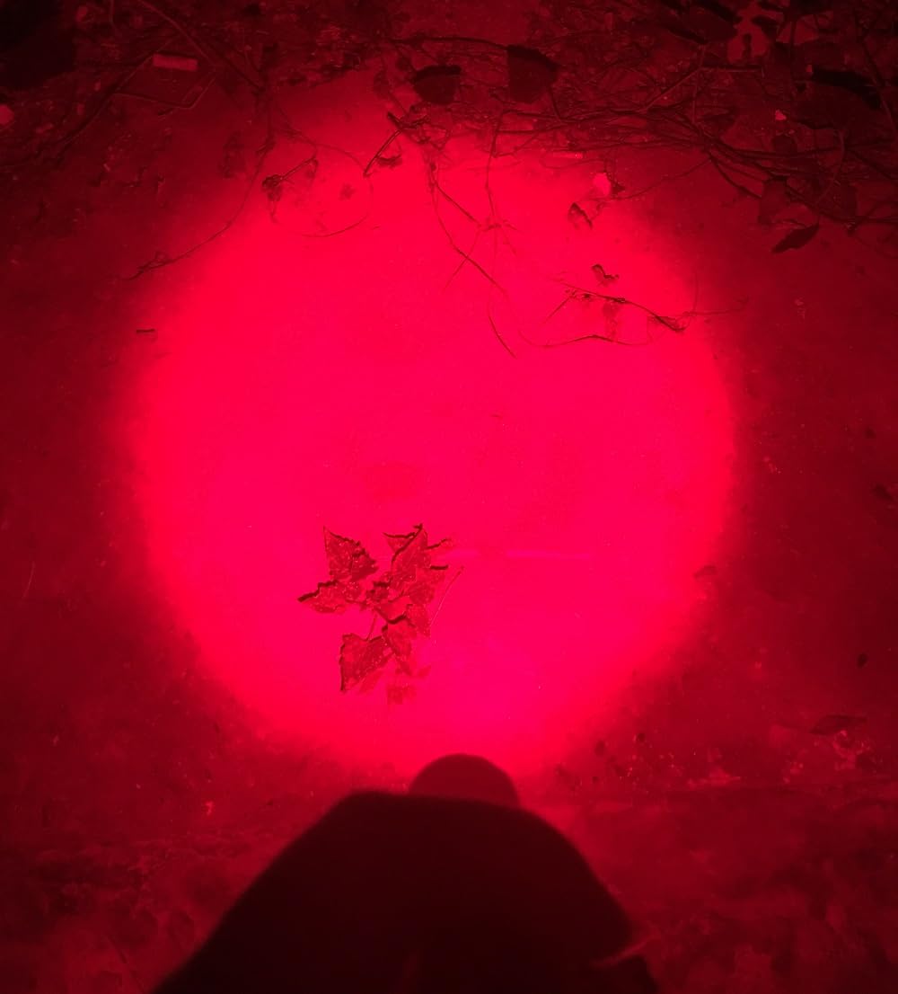 <1>This one mode single mode red light flashlight is specially designed for night activties. Human's eyes are most sensitive to the Red range of light, but animals are not spooked by a Red LED flashlight, so this red light is very helpful to find the animals in the dark, like hogs, coyotes, fox...are less sensitive to the Red light, so you can find them without disturbing them.