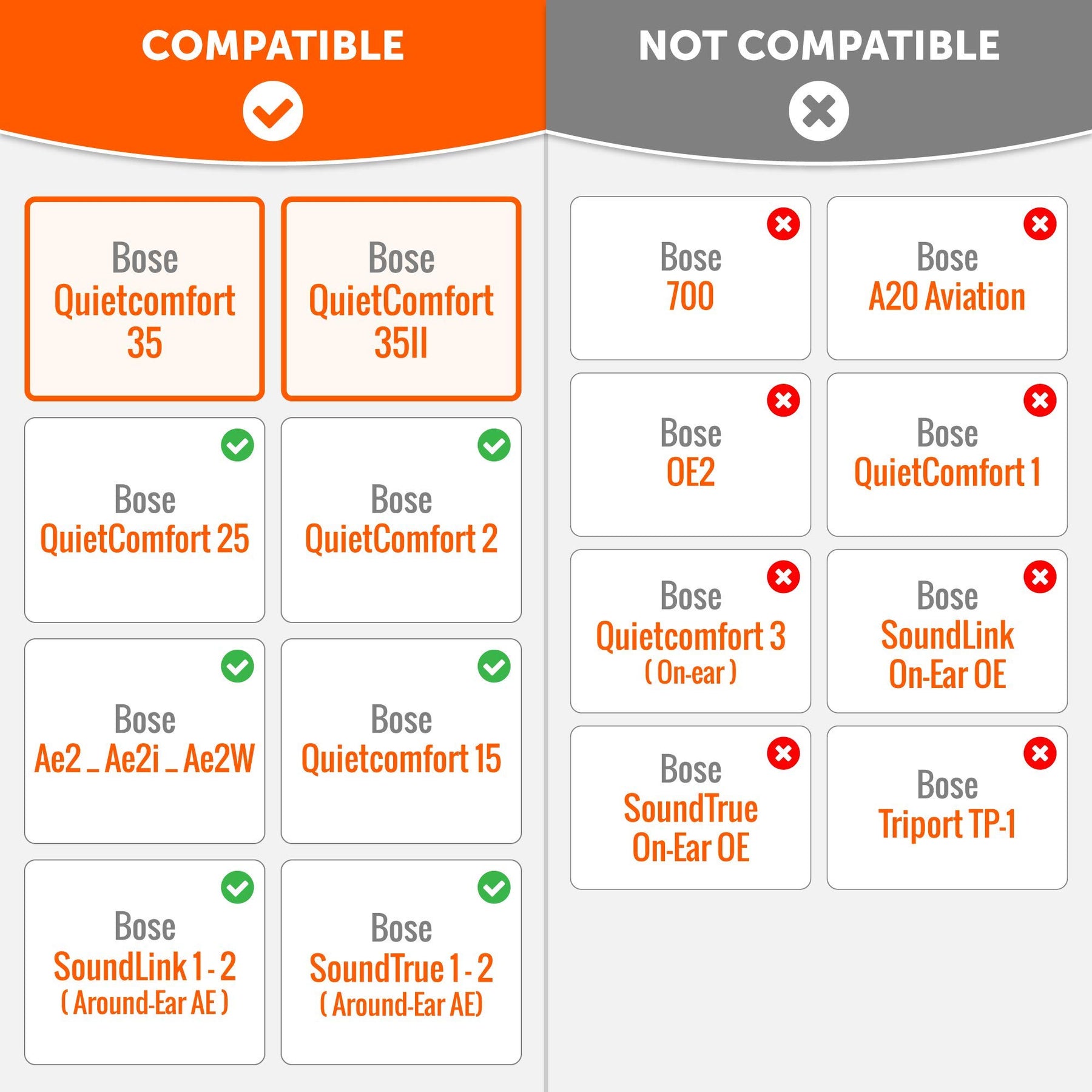 - Fits Like A Glove: These ear pads, made by Wicked Cushions, fit the following models of Bose Headphones perfectly: QuietComfort 35 & 35ii / Quiet Comfort 2 / Qc25 / Qc15 / Ae2 / Ae2i / Ae2w / SoundTrue / SoundLink