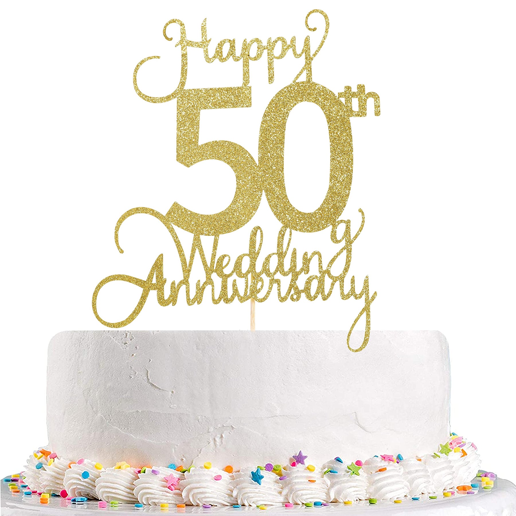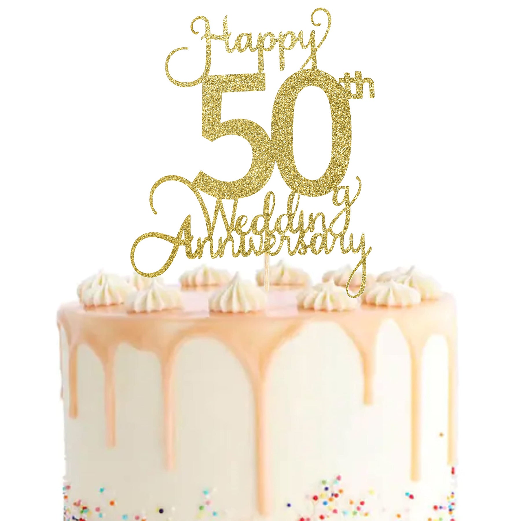 - Original Edible Cake Toppers – Wedding 50th Anniversary Cake Topper - Wedding Anniversary Party Decoration, Premium Gold Sequins, Happy 50th Anniversary, 50th Wedding Anniversary Cake Decoration. by WAWUO