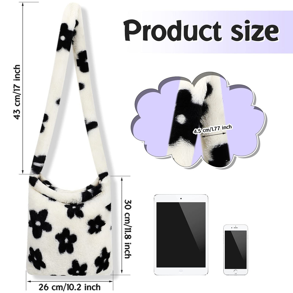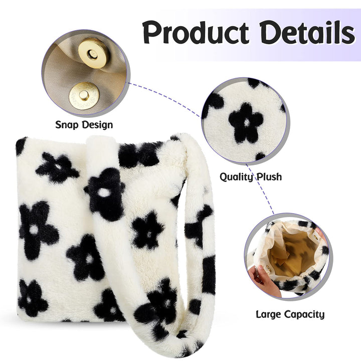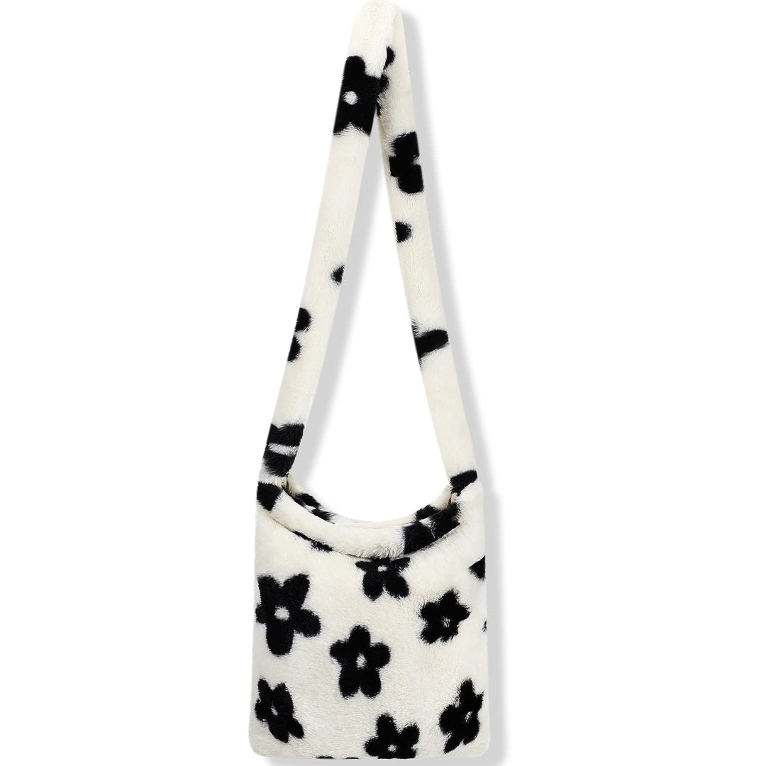 - Original Totes – Fluffy Shoulder Bag Ladies Plush Underarm Bag Tote Bag White Women Y2K Furry Purse Handbag for Autumn and Winter (Flower, 10.2 x 11.8 Inch) by Weewooday