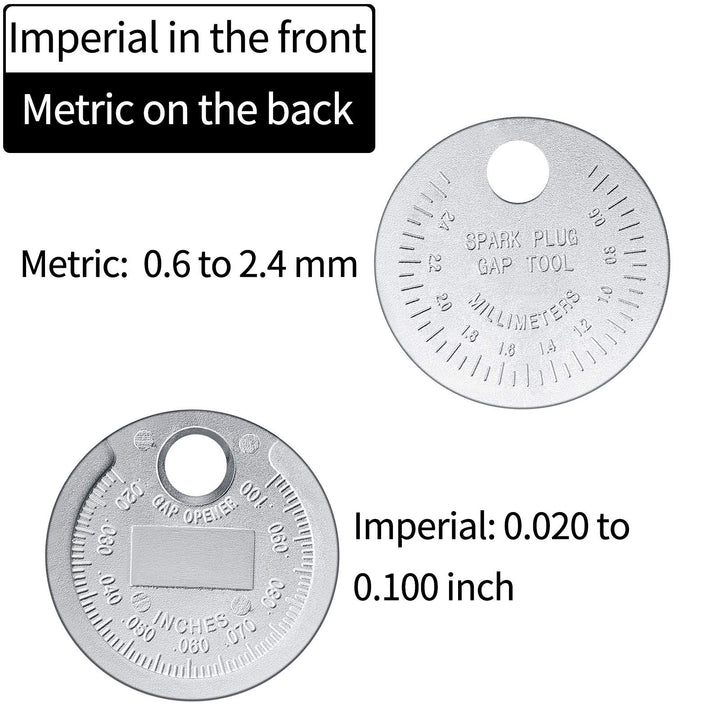 - Accurate and easy to read: the scale range of this spark plug space gauge is from 0.020 to 0.100 inch, and the metric is from 0.6 to 2.4 mm